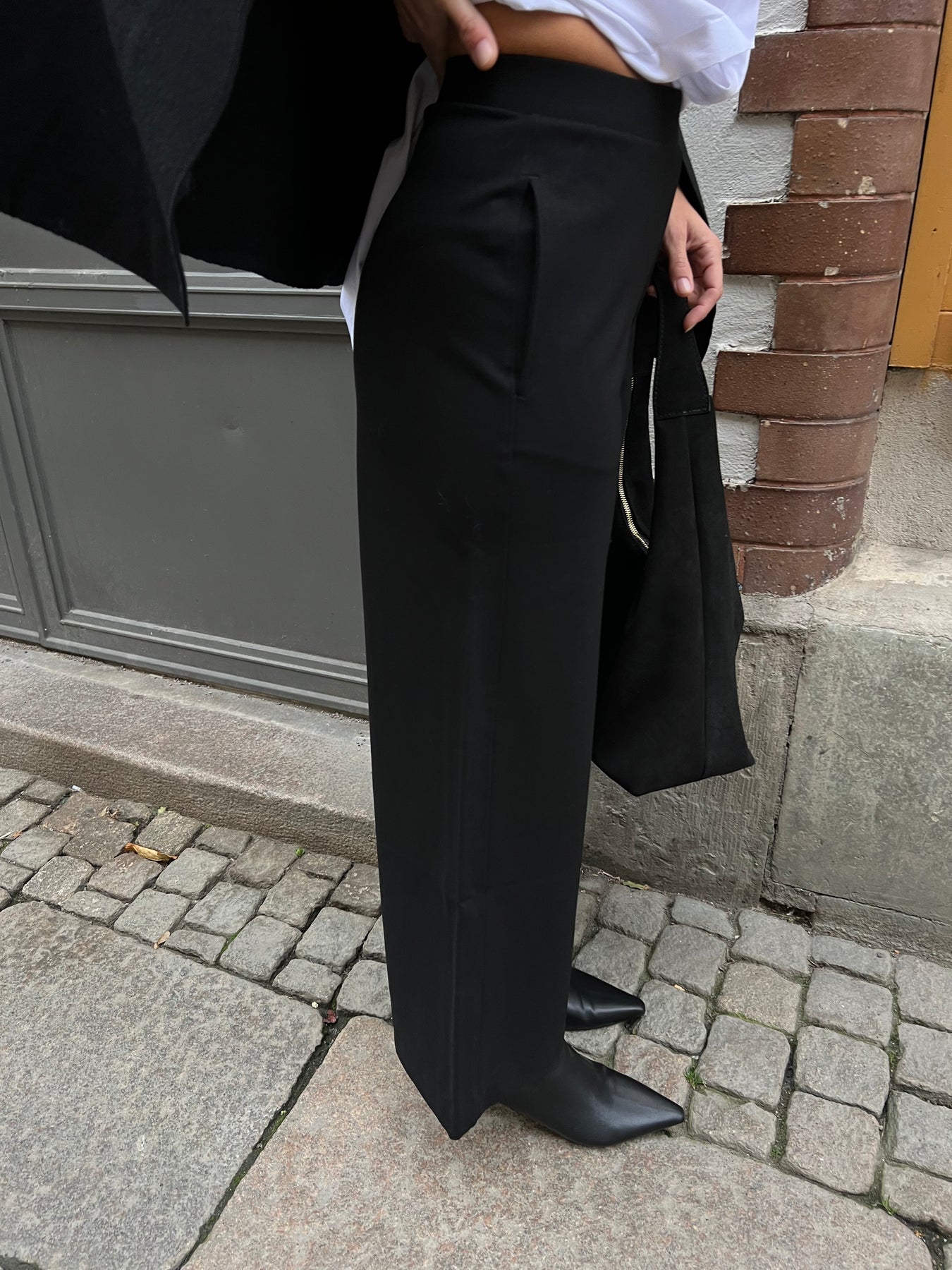 Rak kostym modell som sitter tajtare efter höften i fantastisk skön stretch