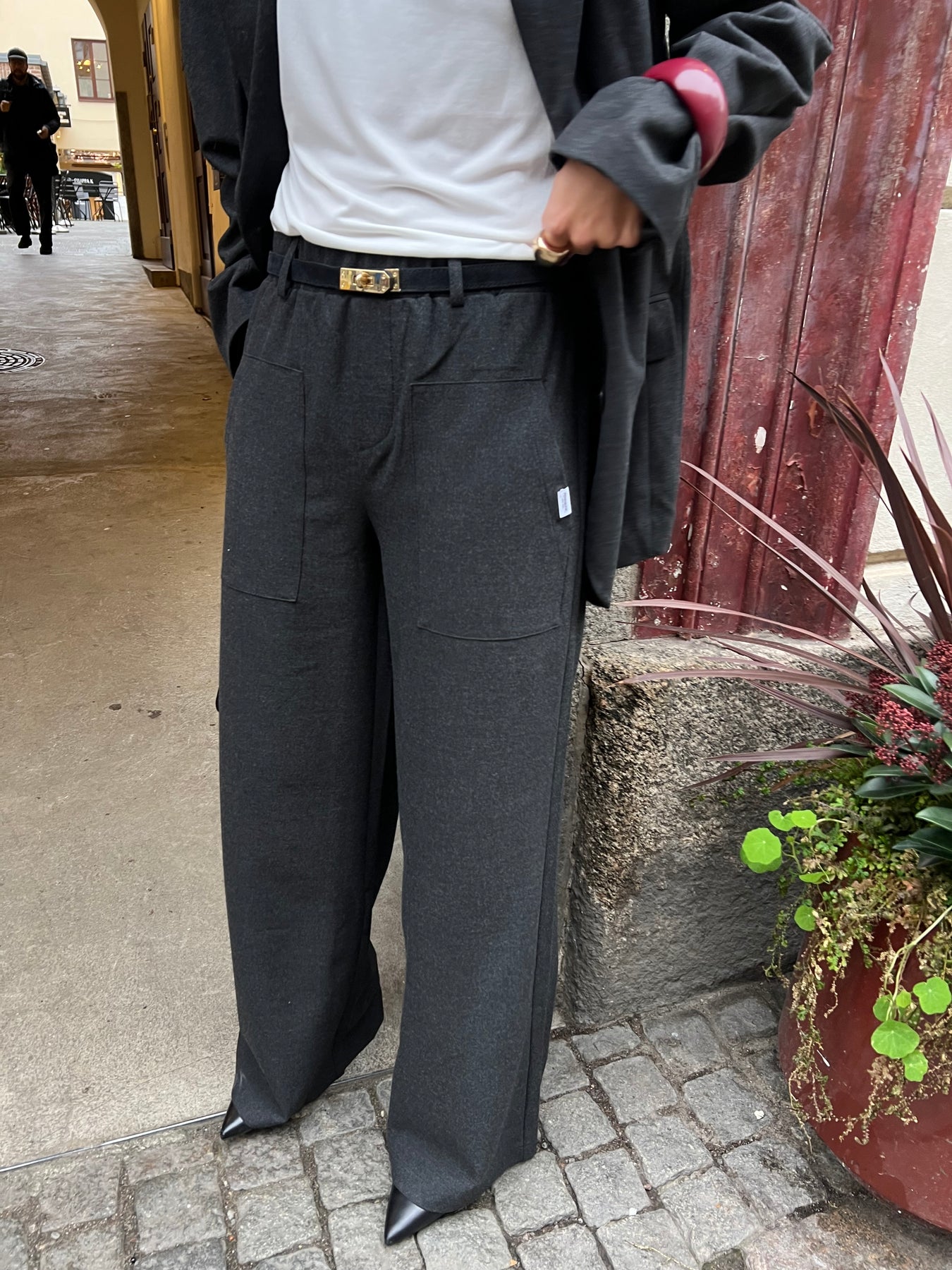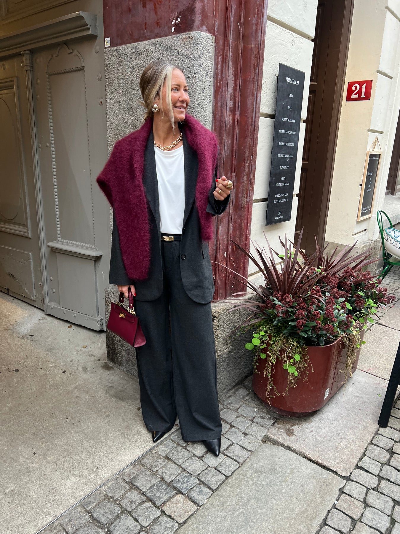ser ut som ull med materialet är 33 % week’s 30 % polyester 32 % recycle polyester 5 % elastan