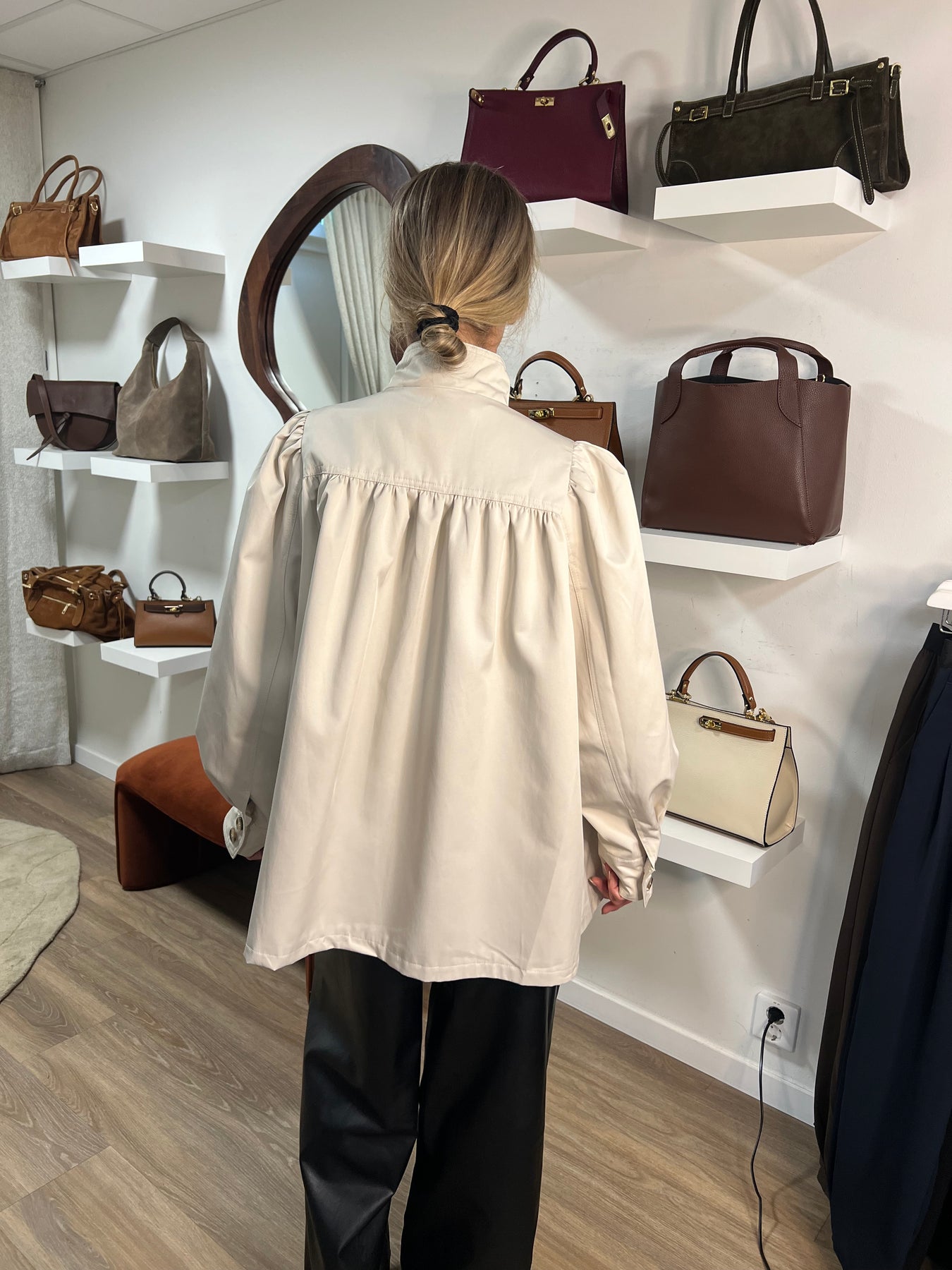 Oversized trenchcoat med puffärm med knappar framtill och vid ärm slut och två fickor fram.