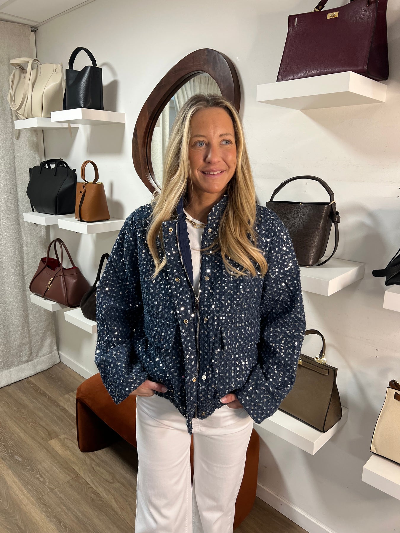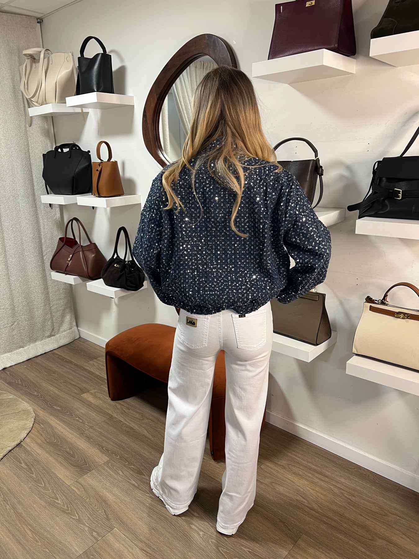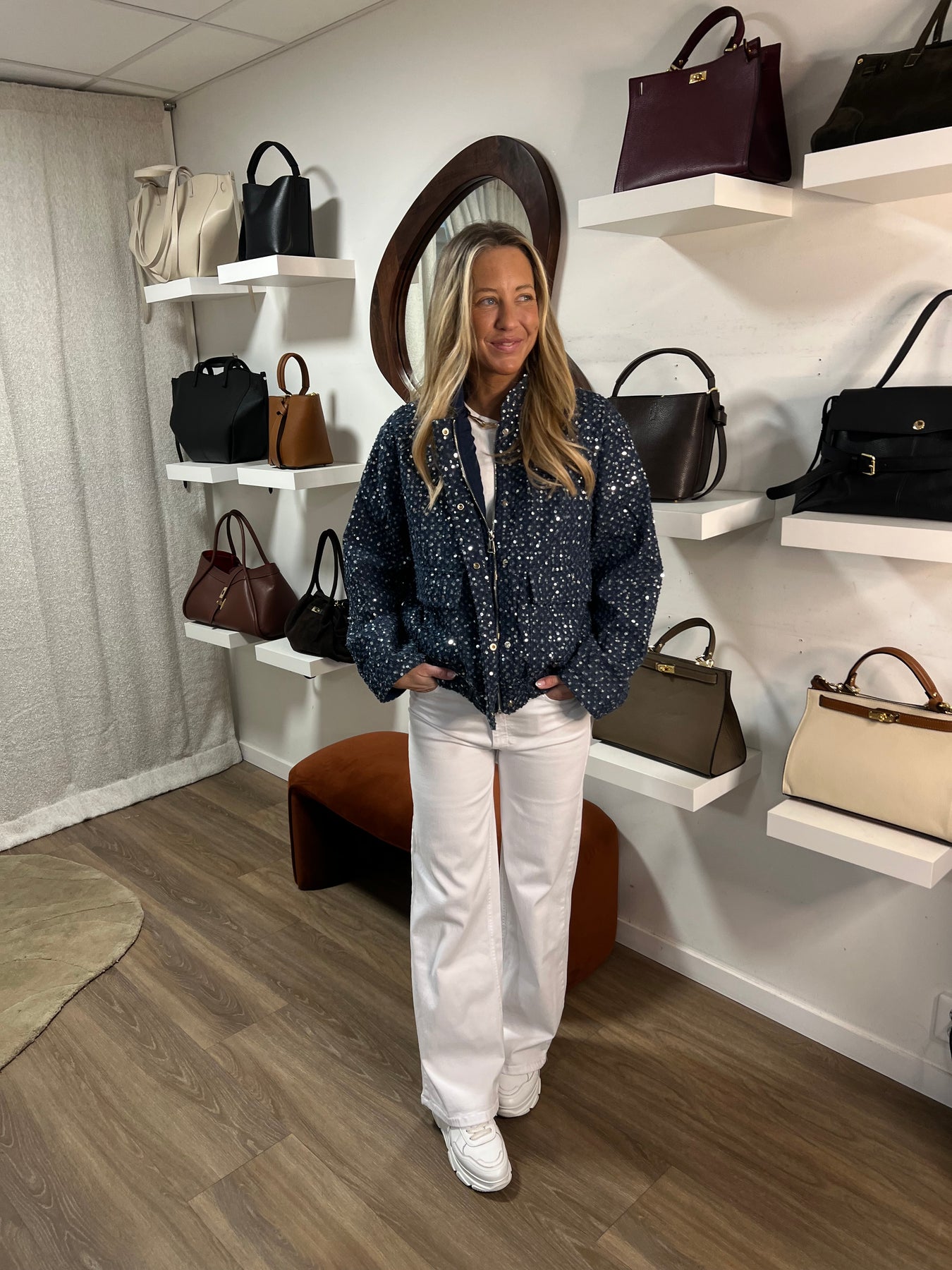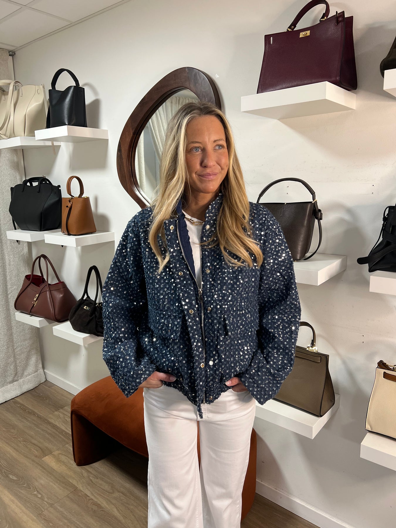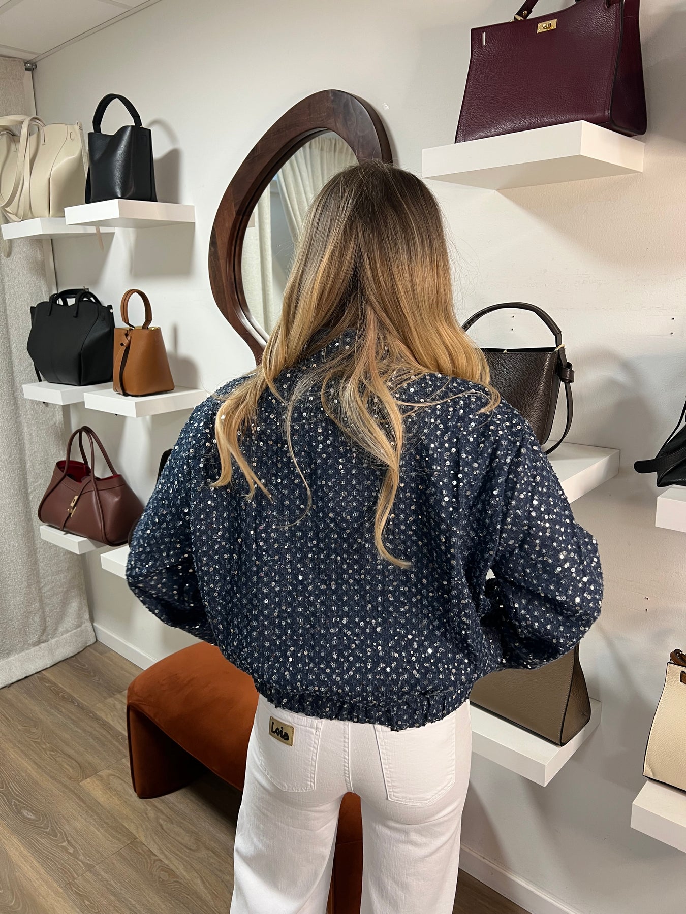 Bomberjacka i Denim intyg med paljetter 95 % polyester 5 % elastan