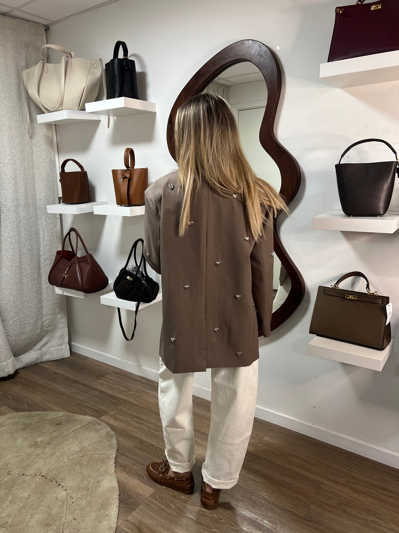 Blazer i beige med silvriga metall hjärtan