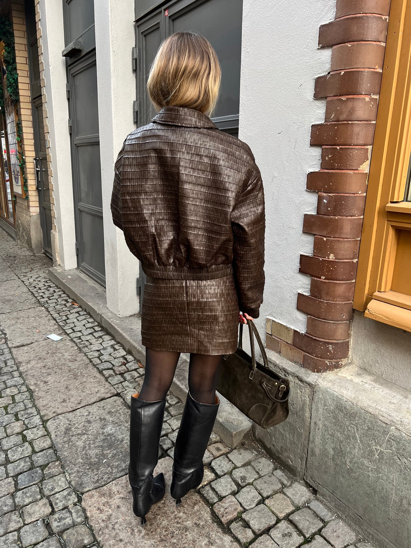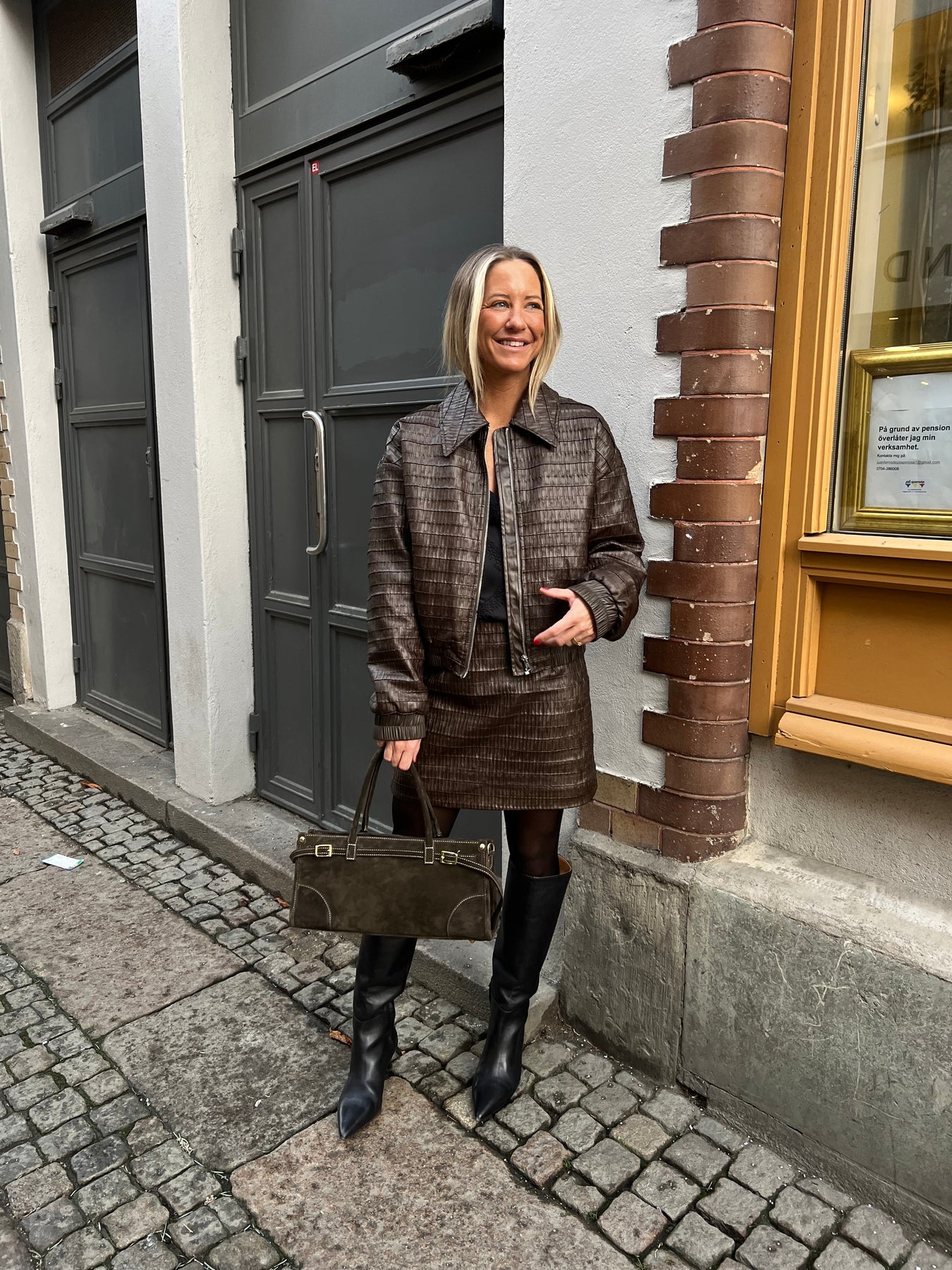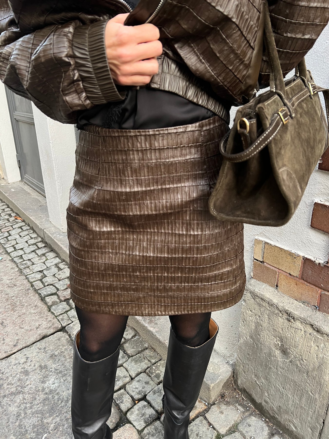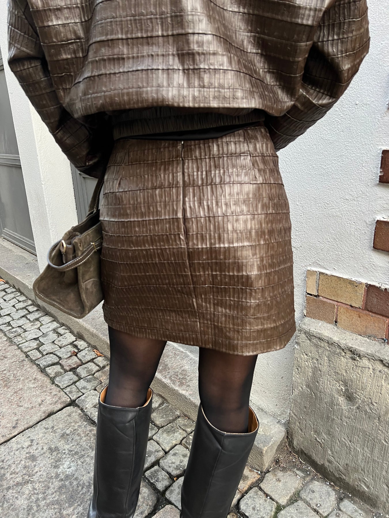 Lite kortare kjol i PU läder som är fodrad normal i storleken