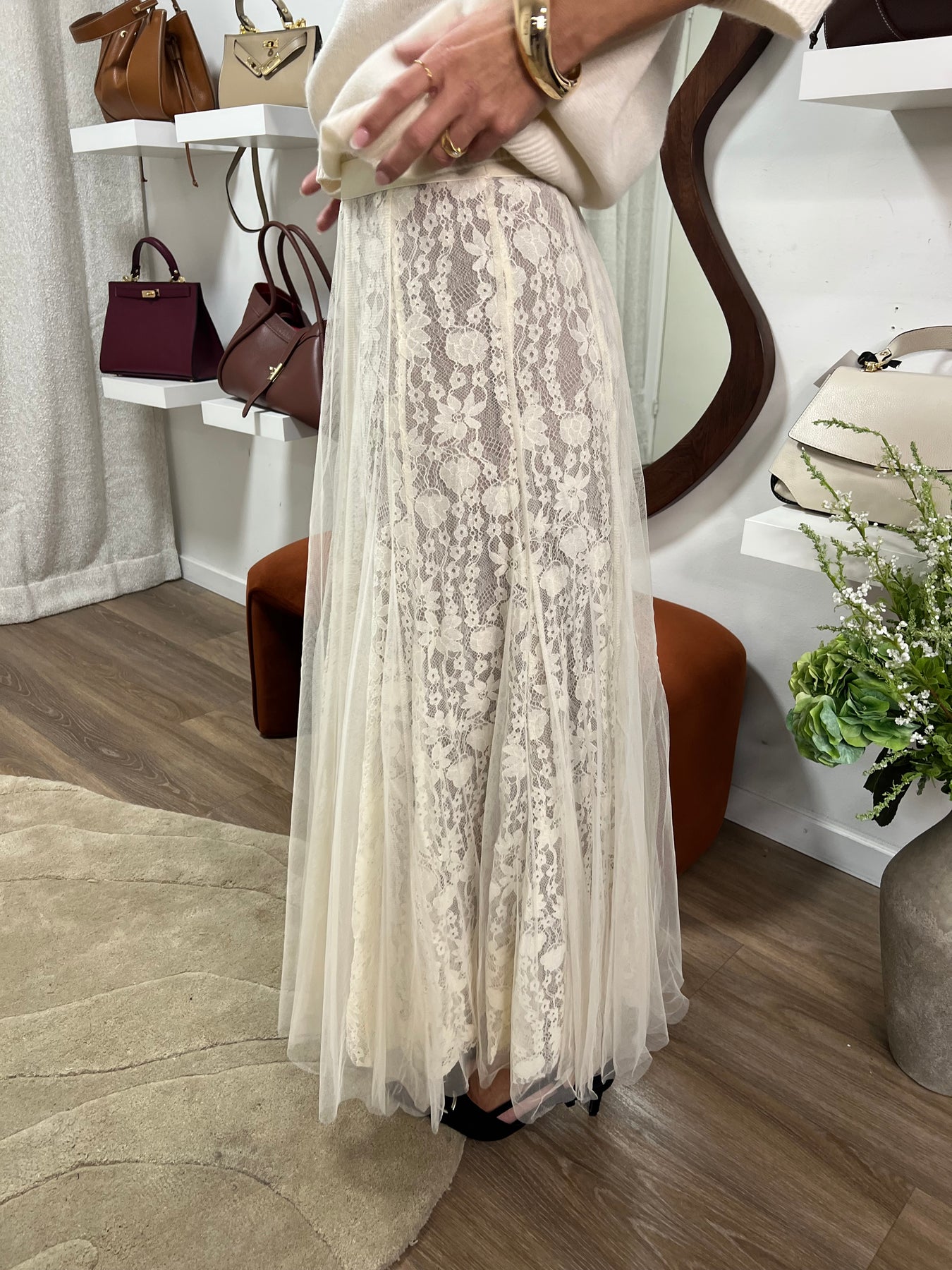 En liten nättare kjol med beige underkjol med spets kjol