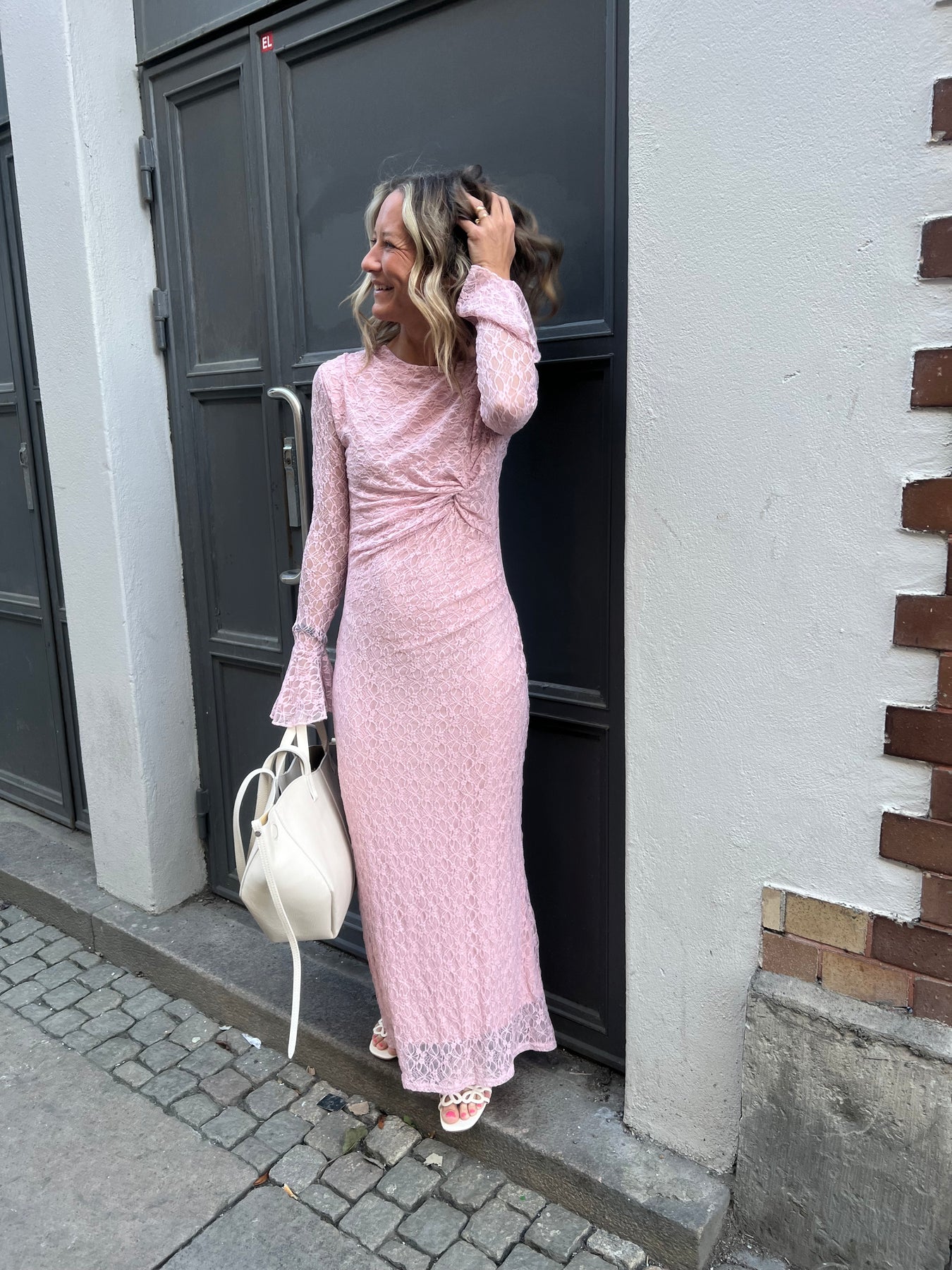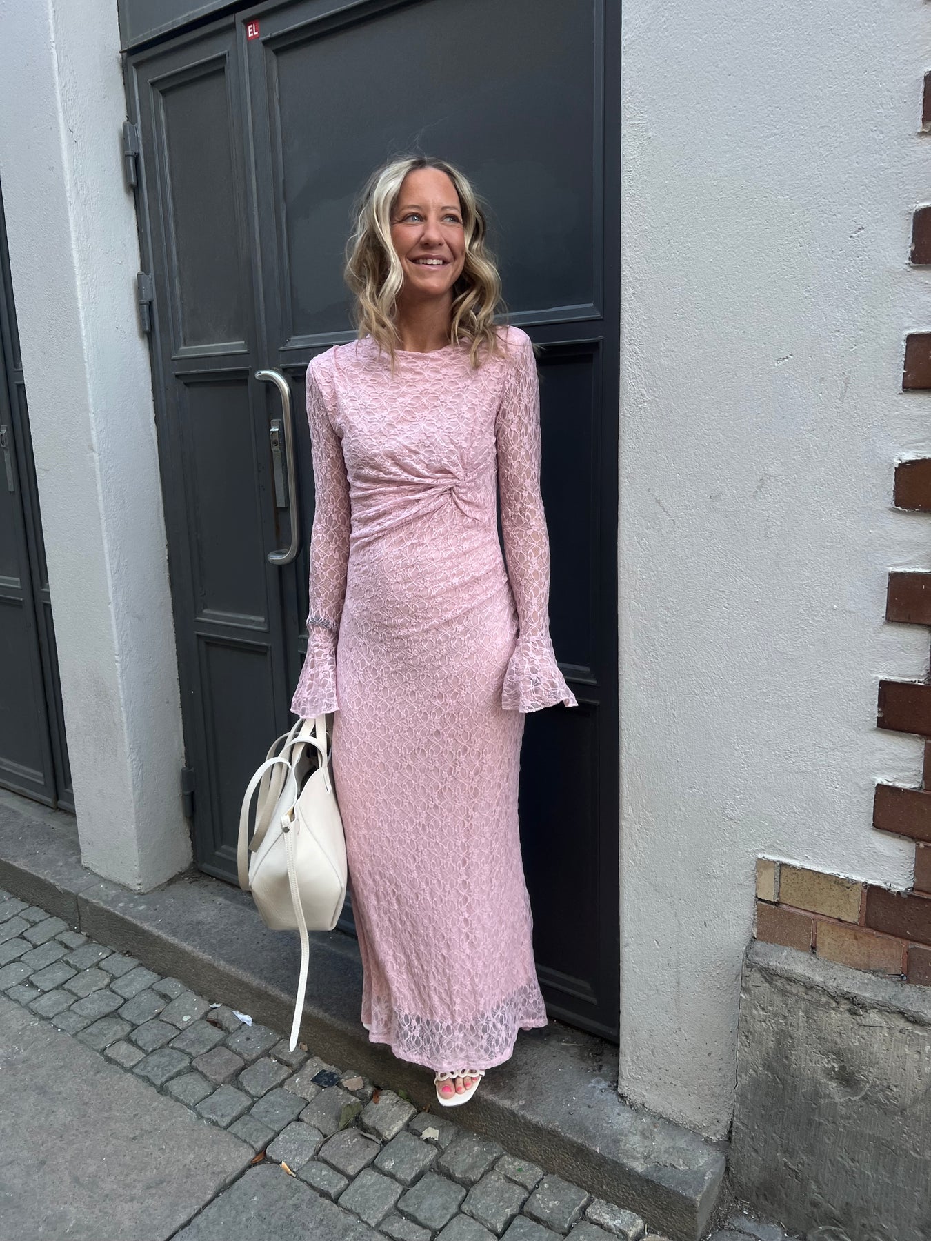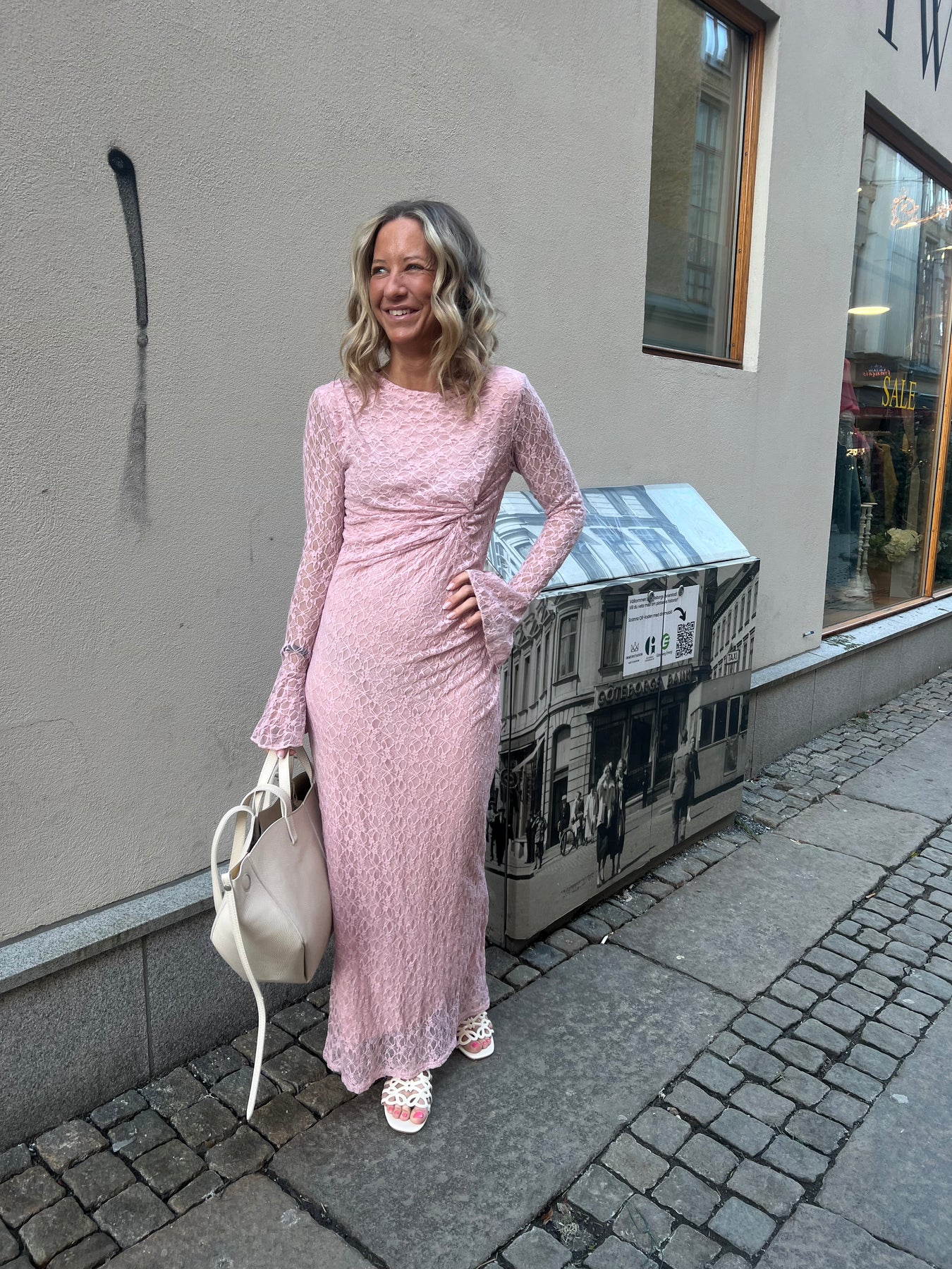 Lång spetsklänning med underklänning 95 % polyester 5 % elastan en storlek som passar 34 till 38