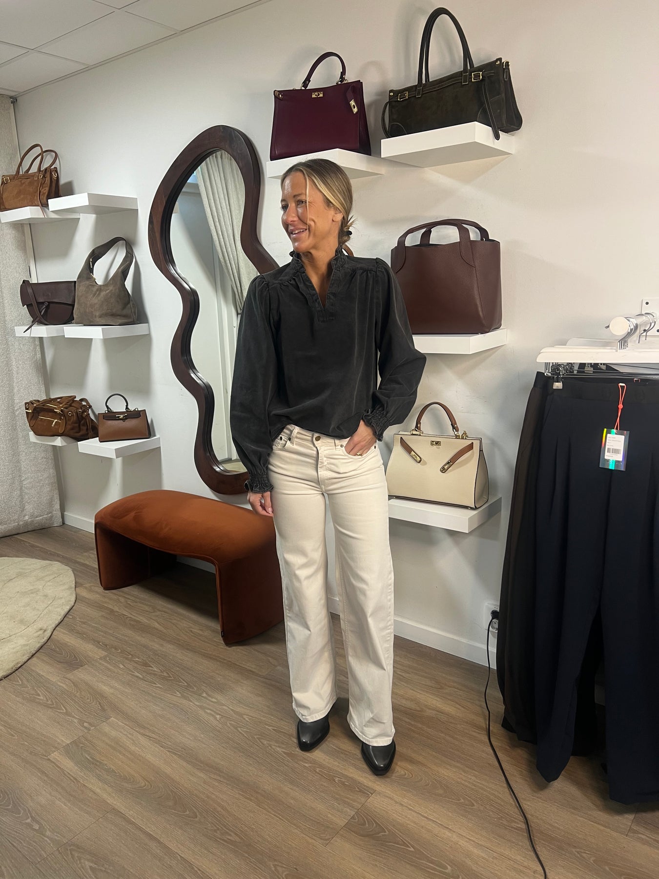 Stum i tyget, om du är mellan två storlekar så ta den större.
