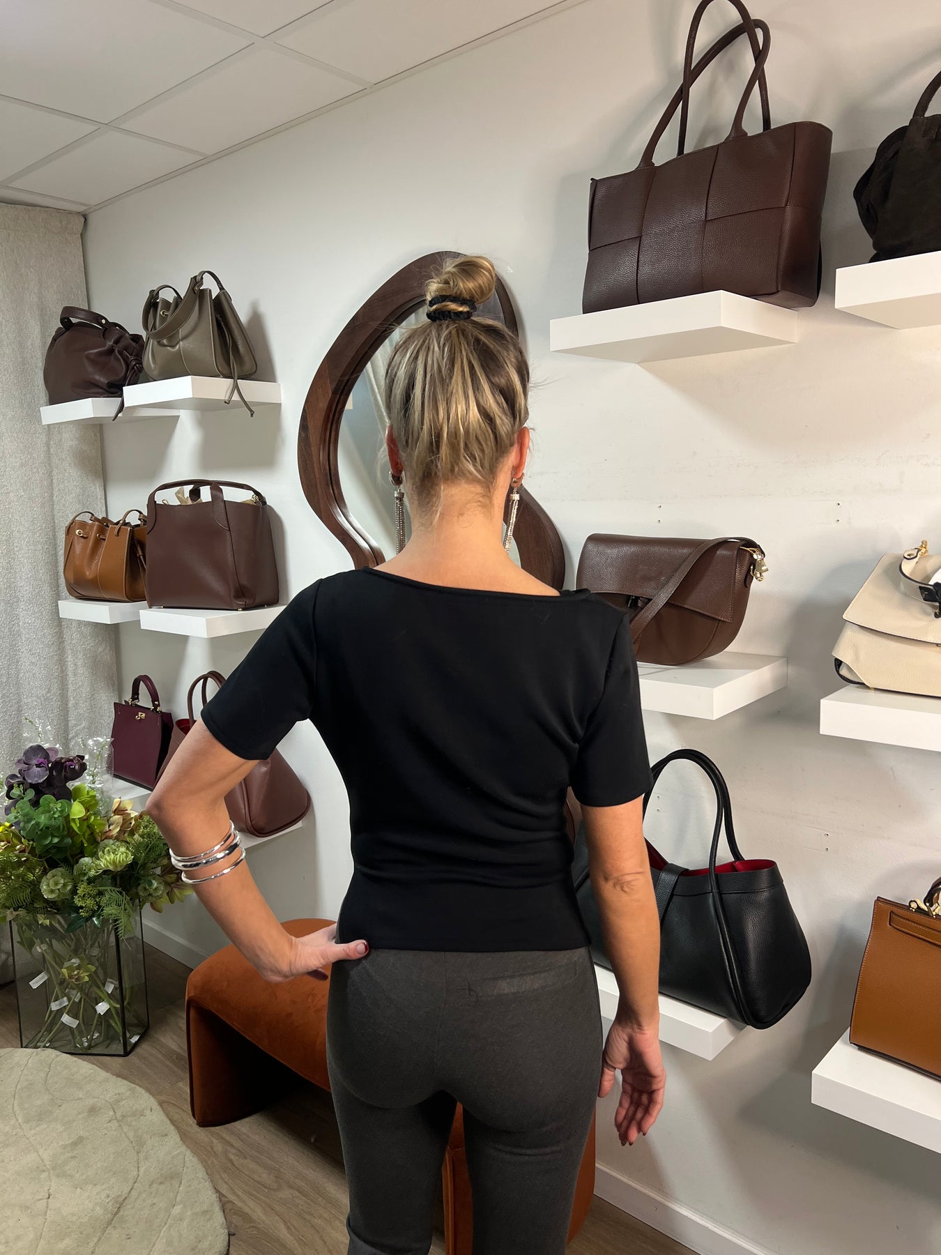 Mjuk skön topp i en lite tajtare modell normal till något mindre i storleken så är du mittemellan gå upp en storlek vår modell har storlek 34 och är normal XS