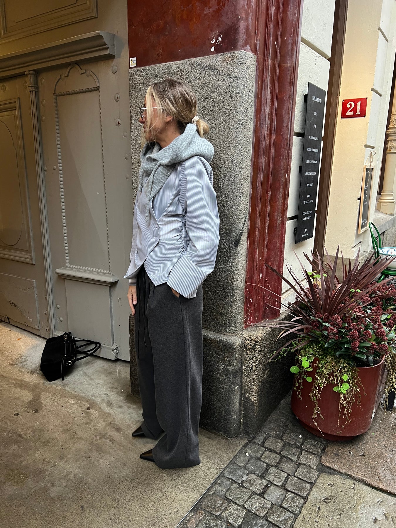 Perfekta kragen att bära under alla kappor och kavajer en storlek två Hej knappar fram till och luva. Materialet är 8 % ull 11 % polyester 21 % nylon, 1 % Spandex, 59 % recycle polyester