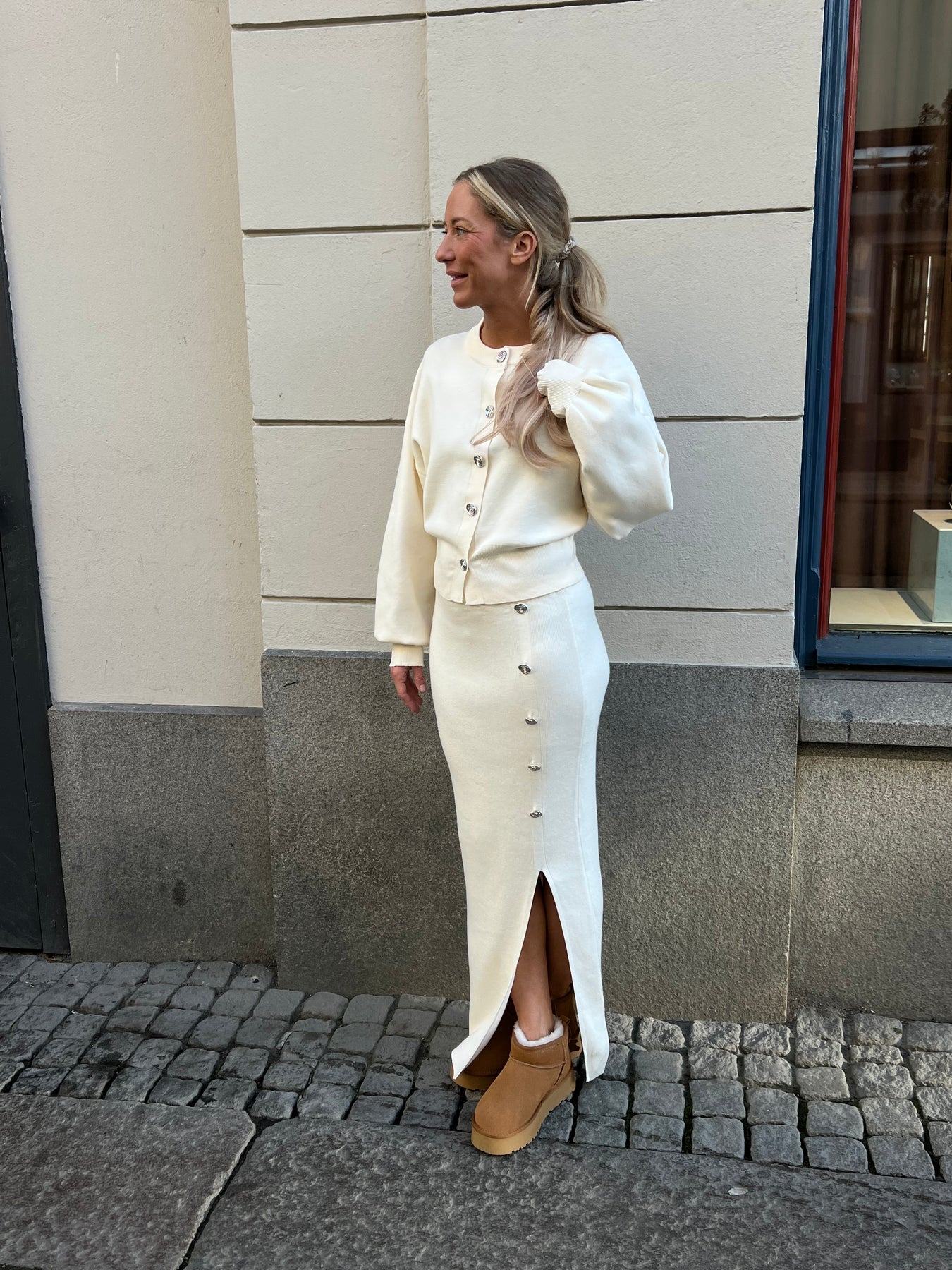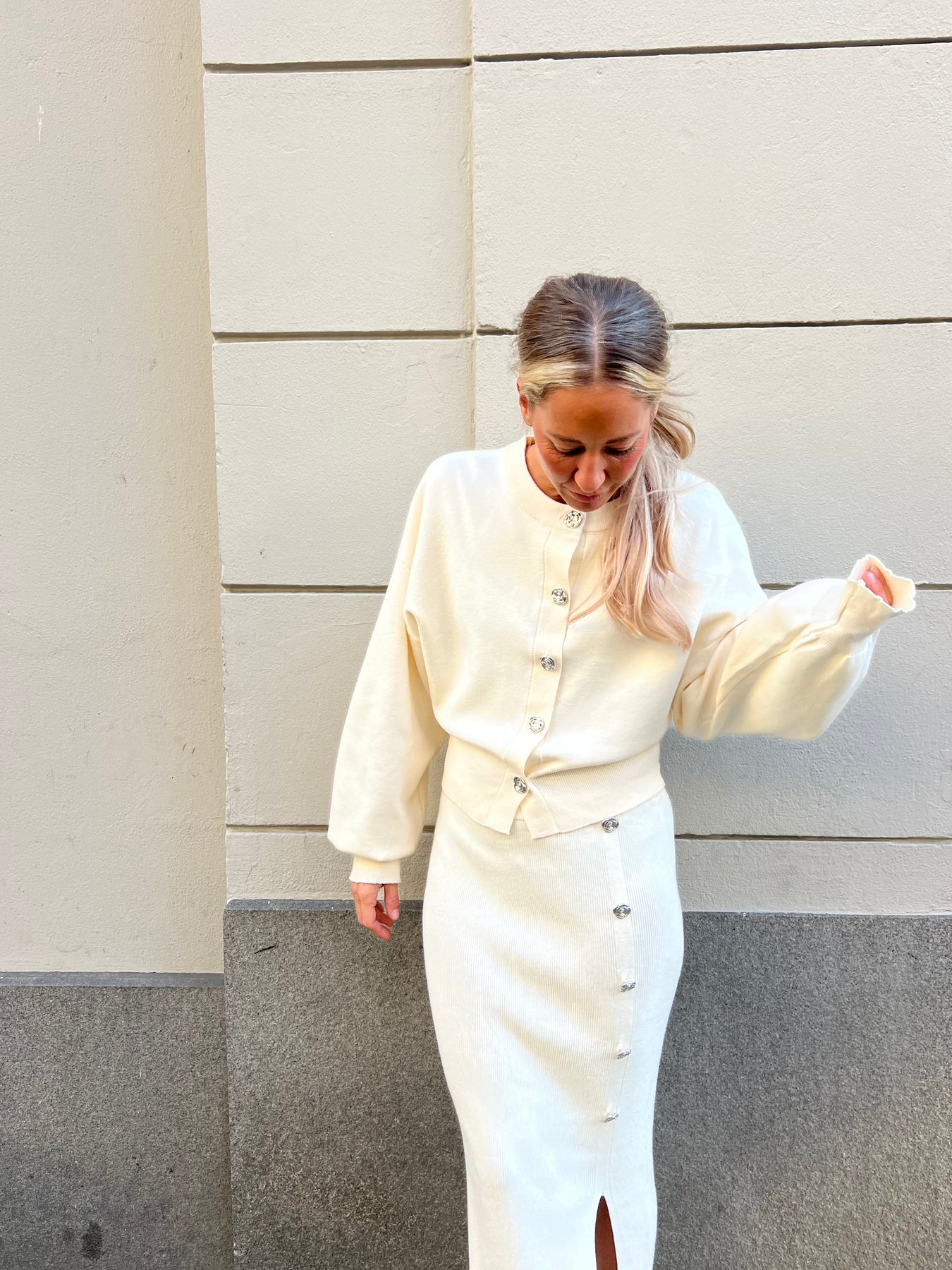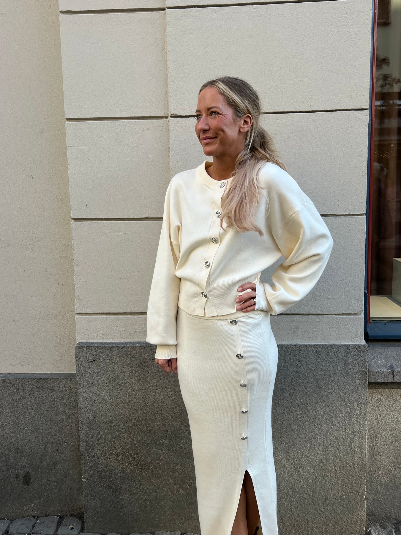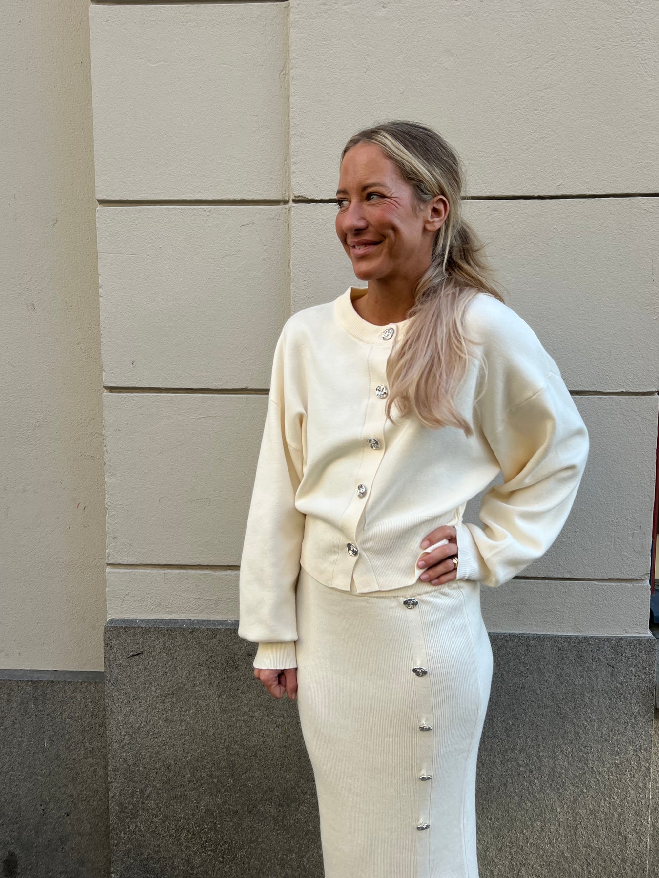 Superfin kofta med silvriga rosknappar framtill, väldigt mjuk i materialet! Matcha till kjolen i samma set för en full look!