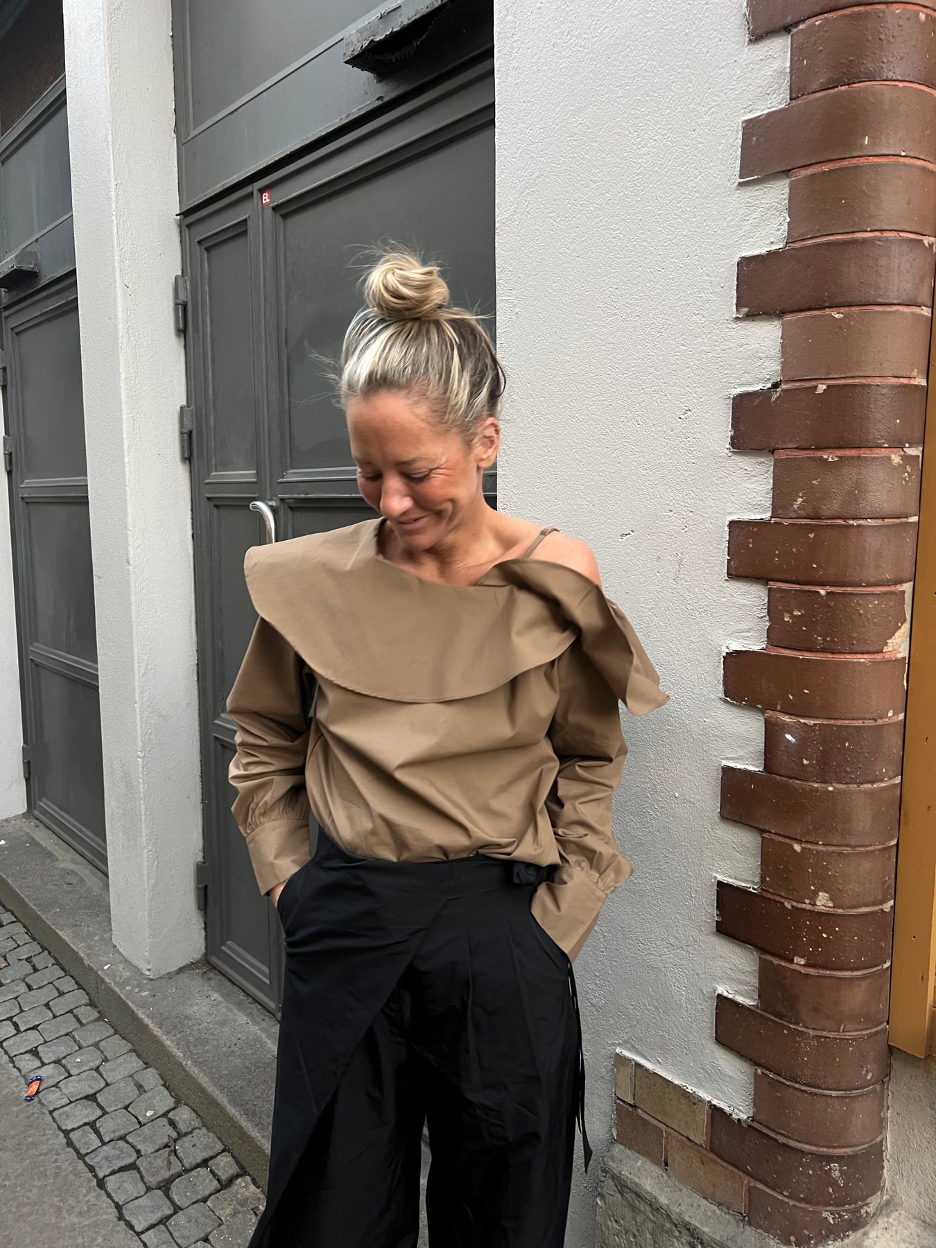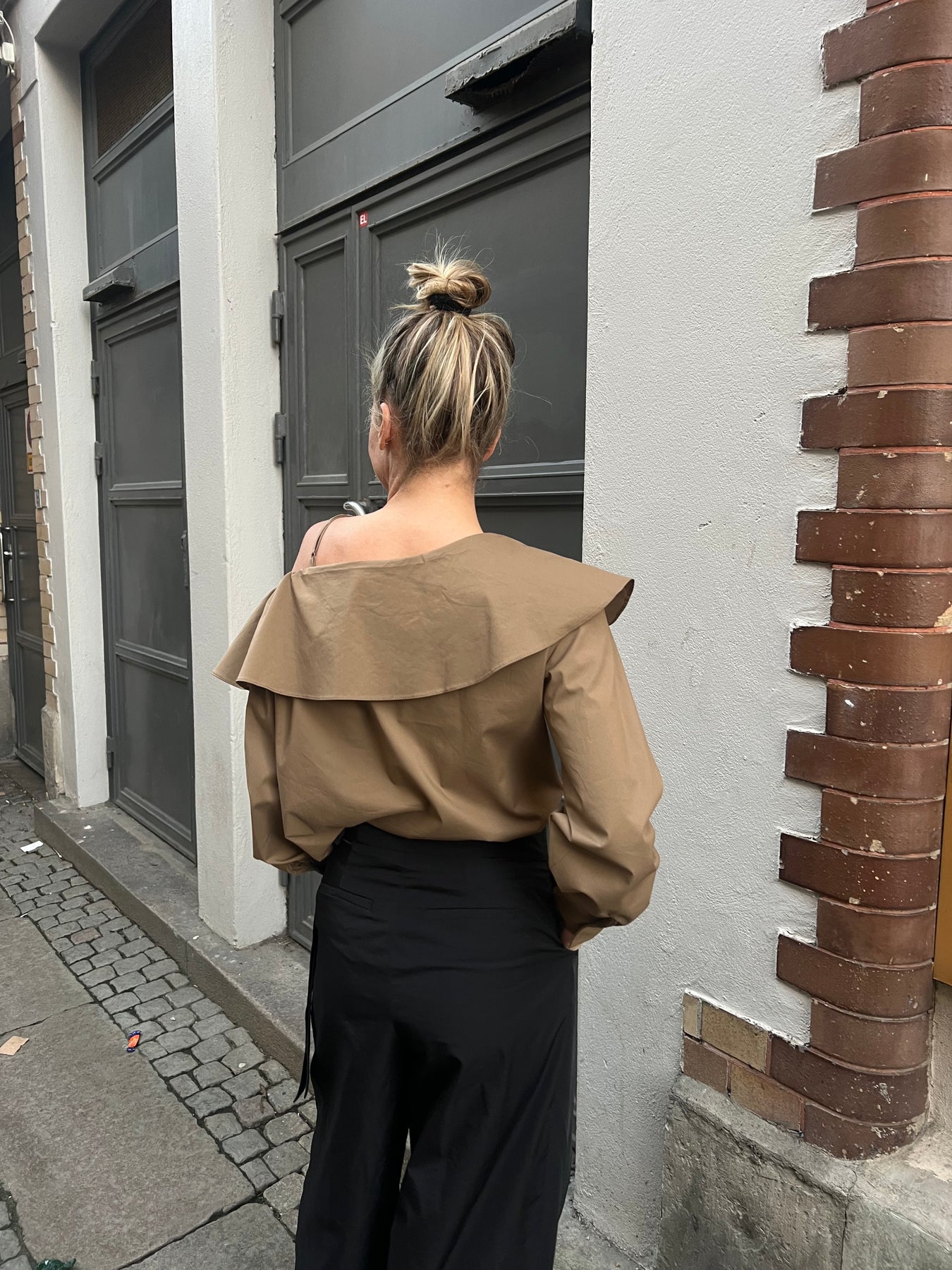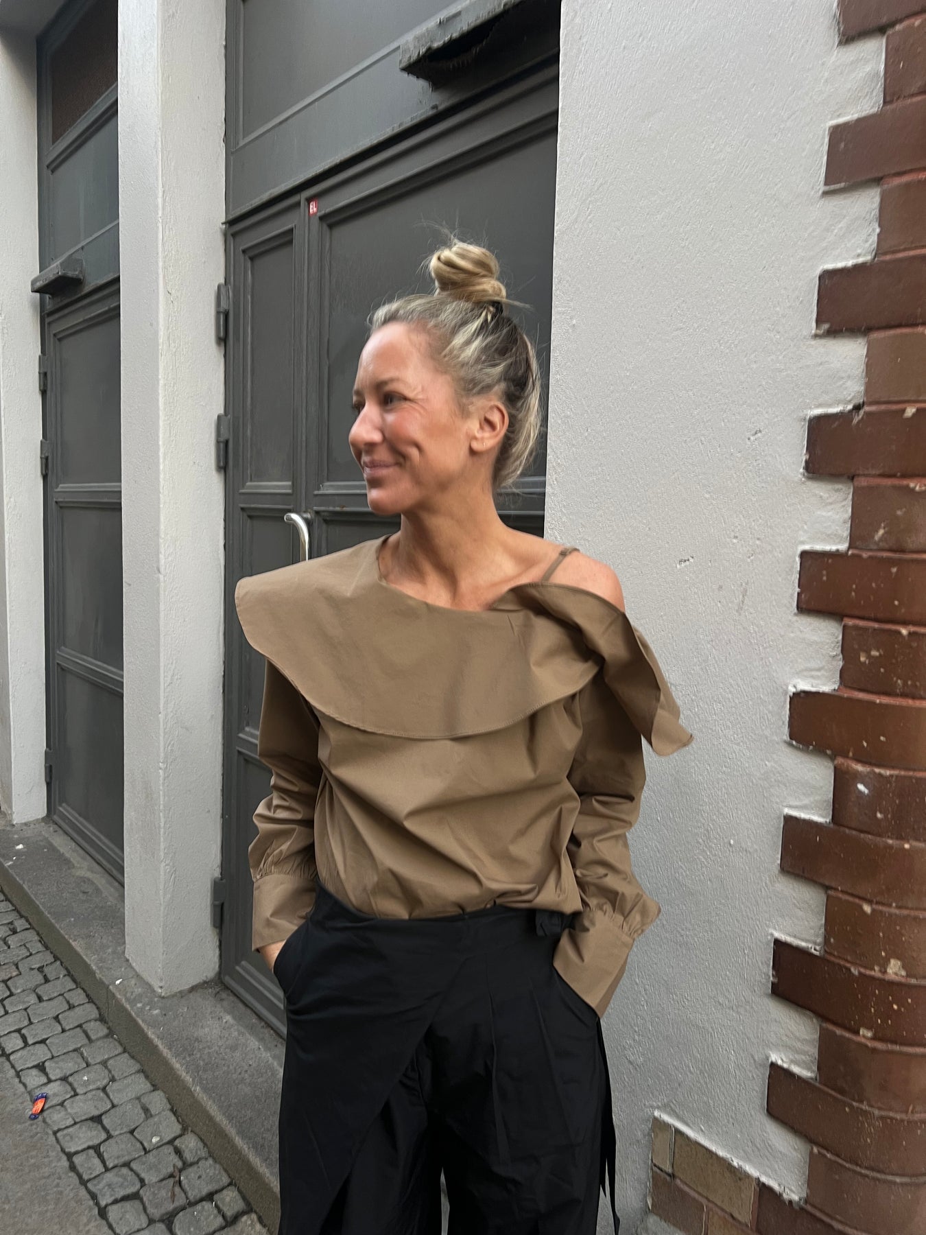 Magisk blouse med detaljerad volang och band som gör att den sitter på plats! I 100% bomull i en härlig krispig känsla! Normal i storlek.