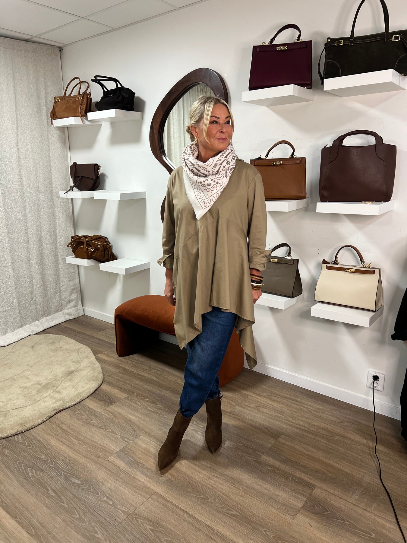 Lång skjorta med knäppning tre knappar. Material: 100% bomull