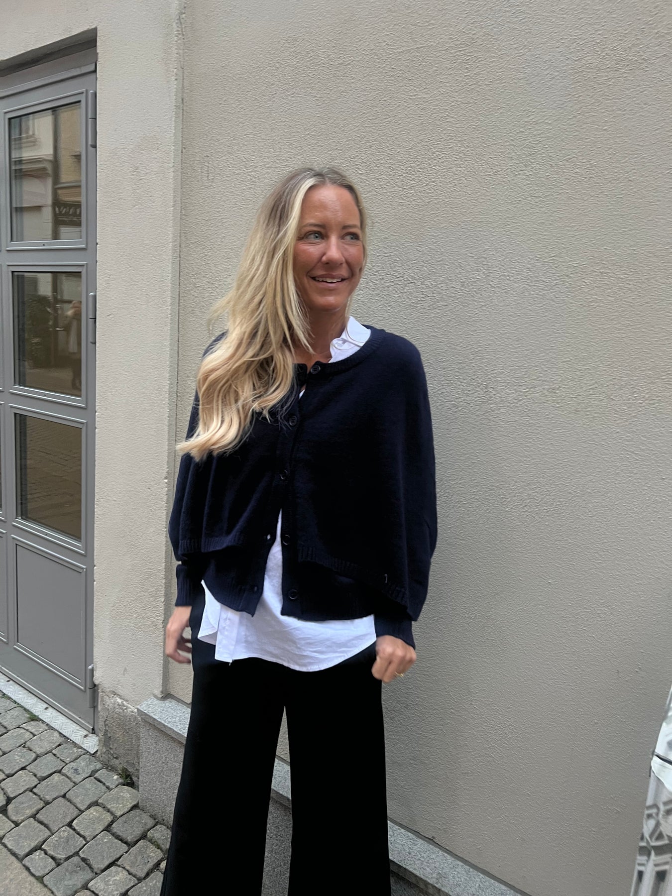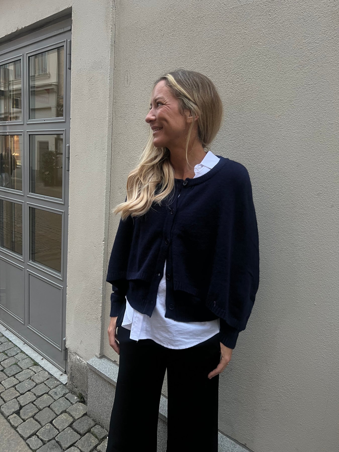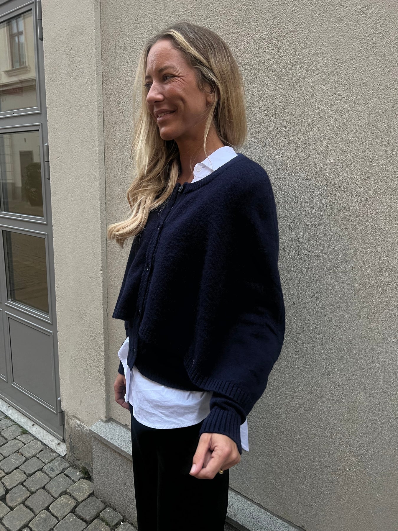 Mjuk och skön poncho kofta kommer i två storlekar och är normal i storlek. Materialet är 52 % akryl 28 % polyamid 20 % elastan