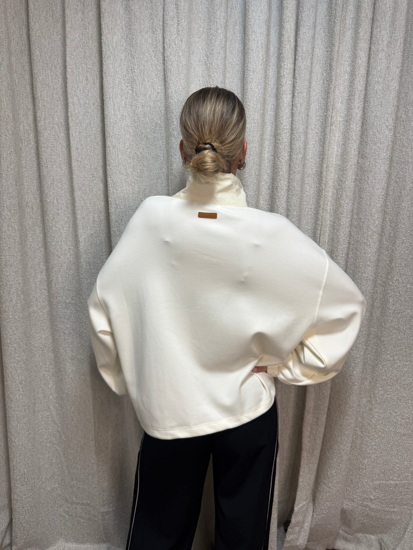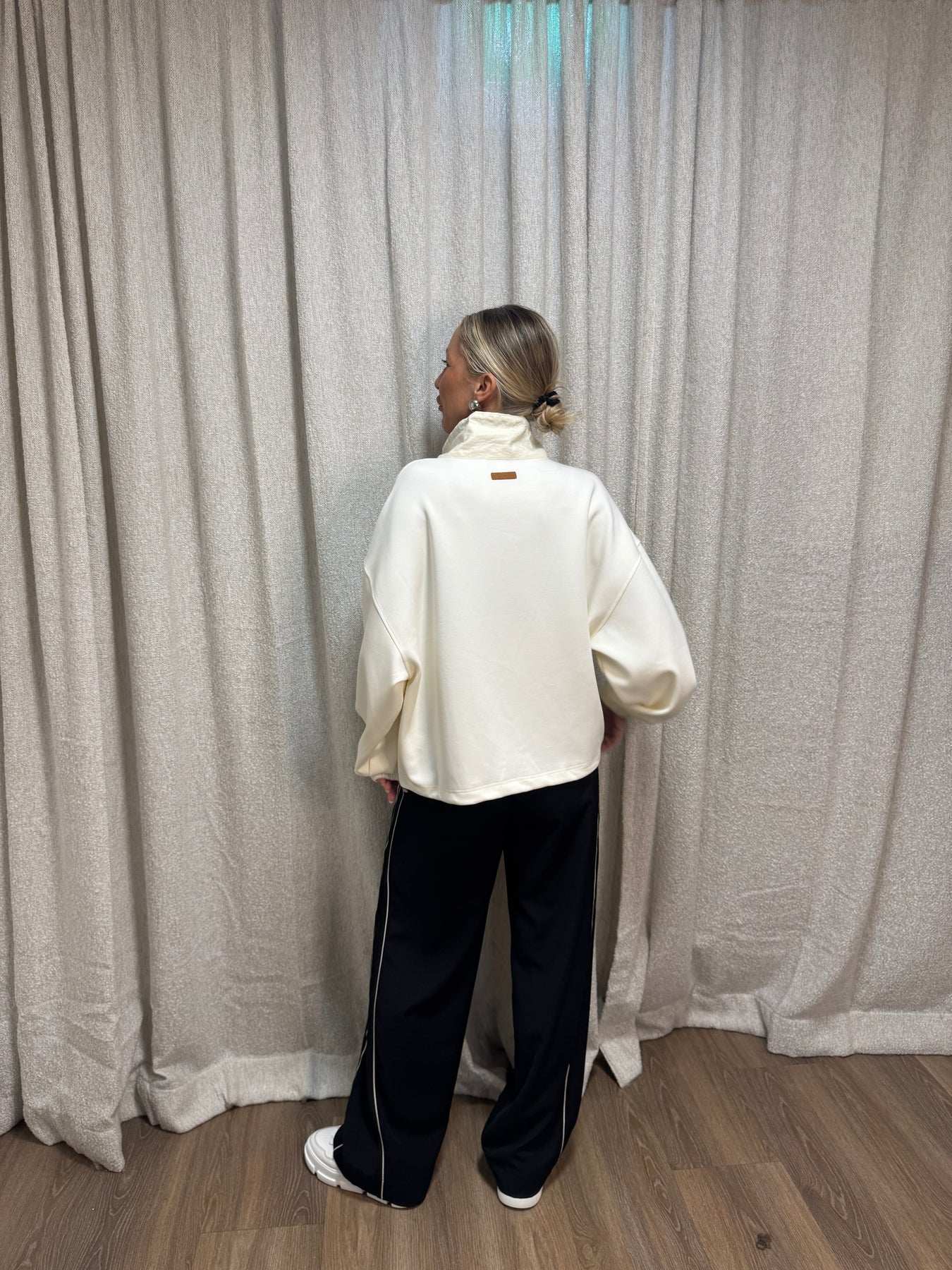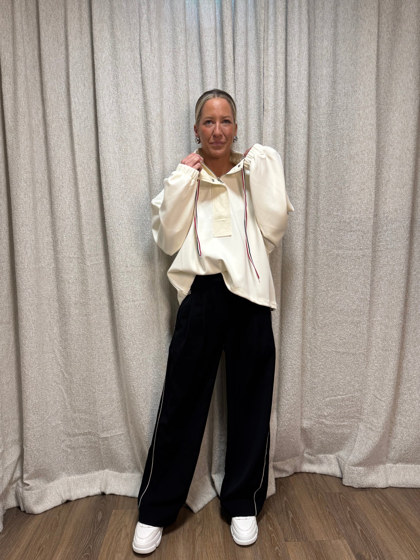 så cool tröja med dragsko nertill och med stor krage!
