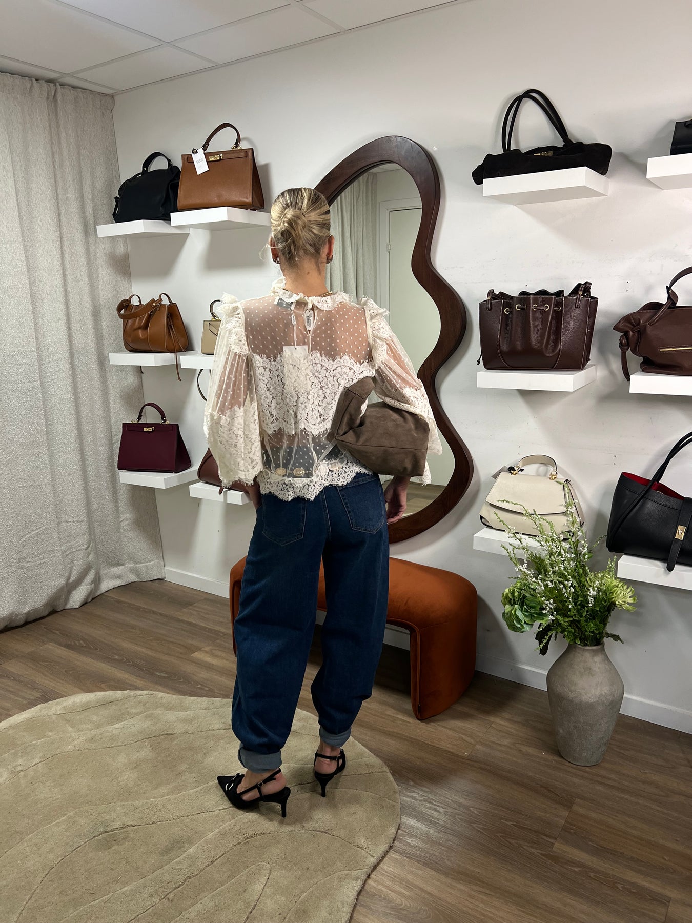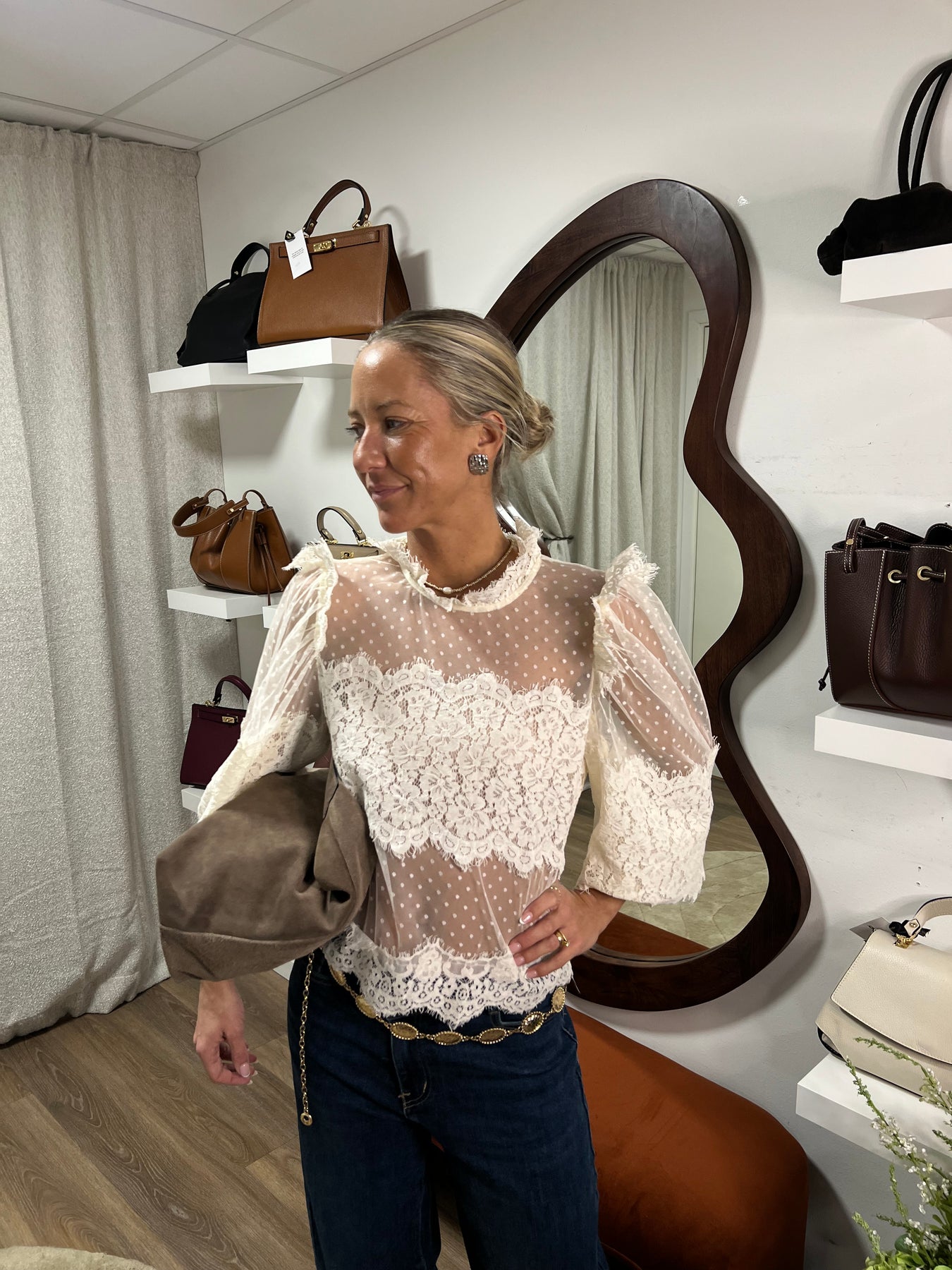 Otroligt fin spetsblus med vintagekänsla, crème färgad spets Materialet är 100 % polyester normal i storleken
