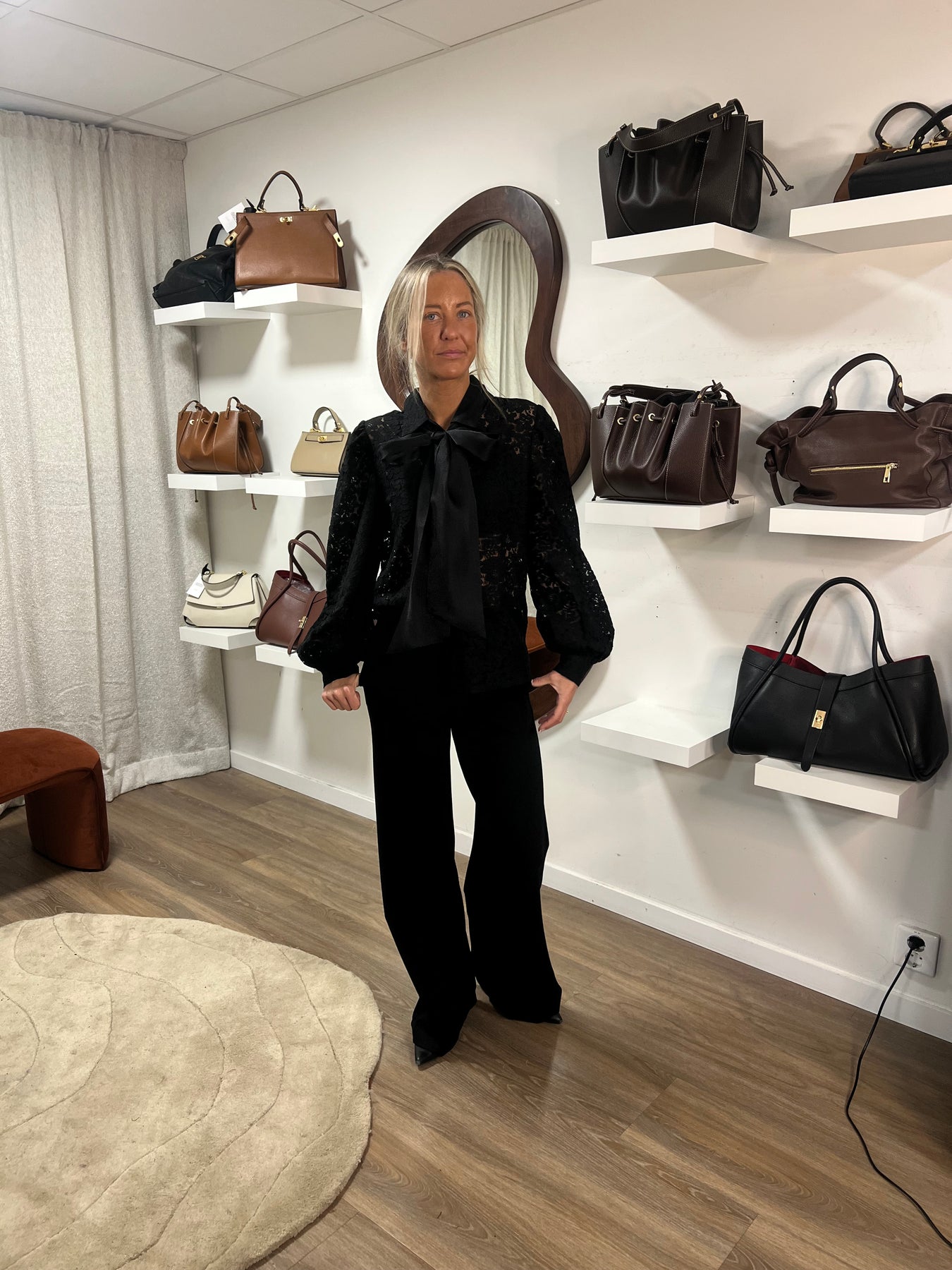 Klassisk snygg spetsblus med tillhörande band som du kan knyta som rosett eller välja att ta av