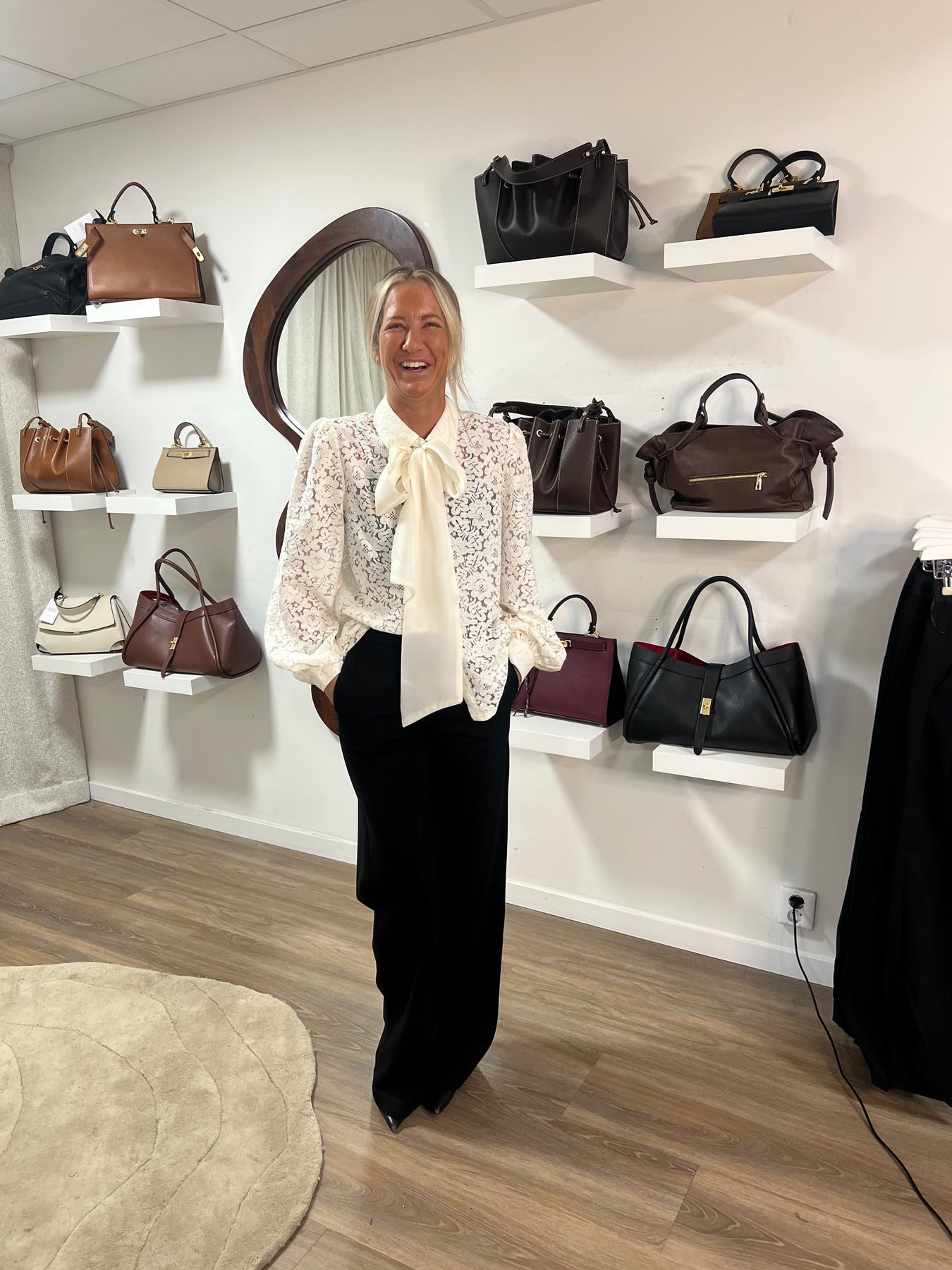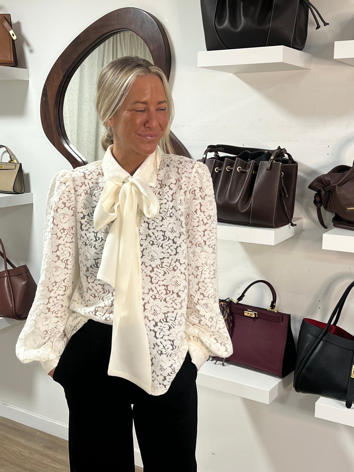 Klassisk snygg spetsblus med tillhörande band som du kan knyta som rosett eller välja att ta av