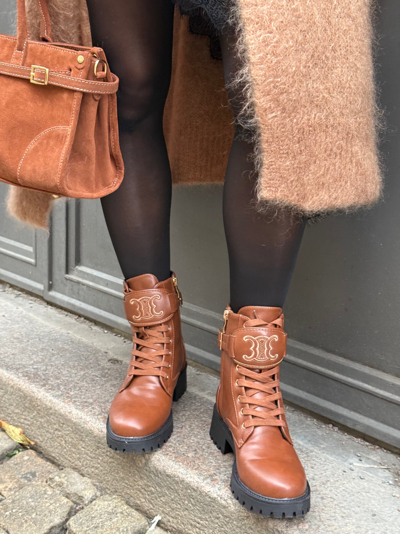 Boots med snörning och emblem framtill. Går även att ta bort! Detaljer i guld! I PU