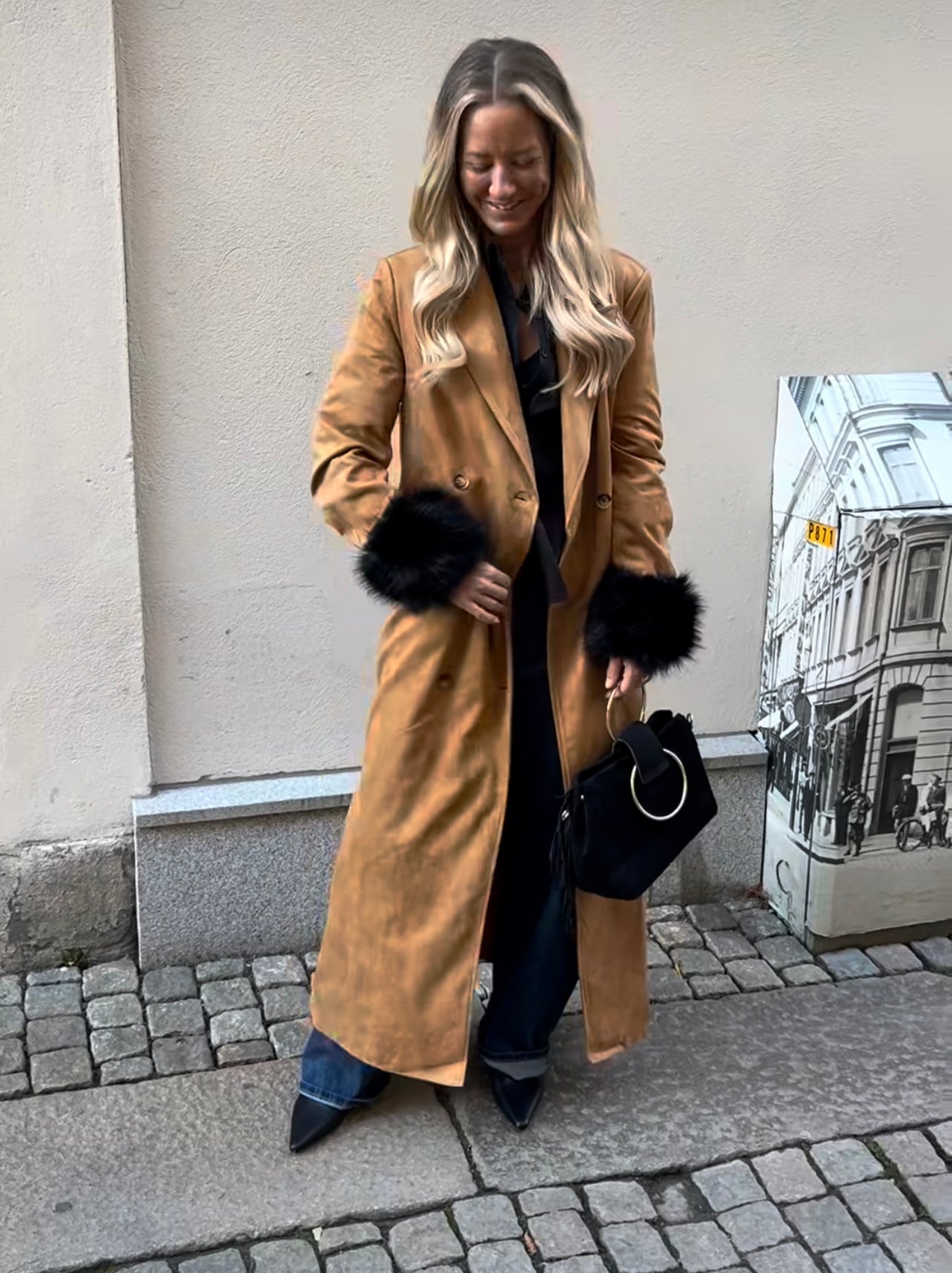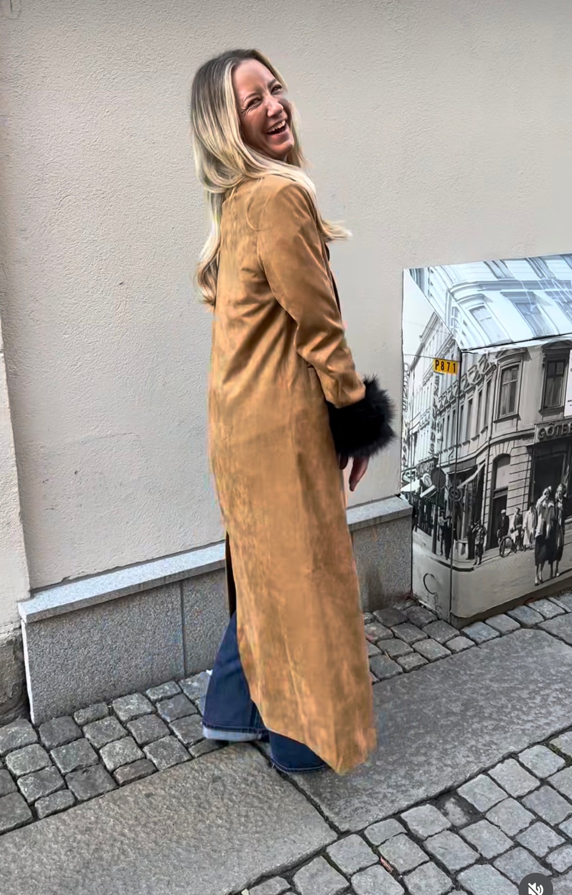 Kappa i imitations mocka i längre modell! Normal i storlek med foder på insidan.