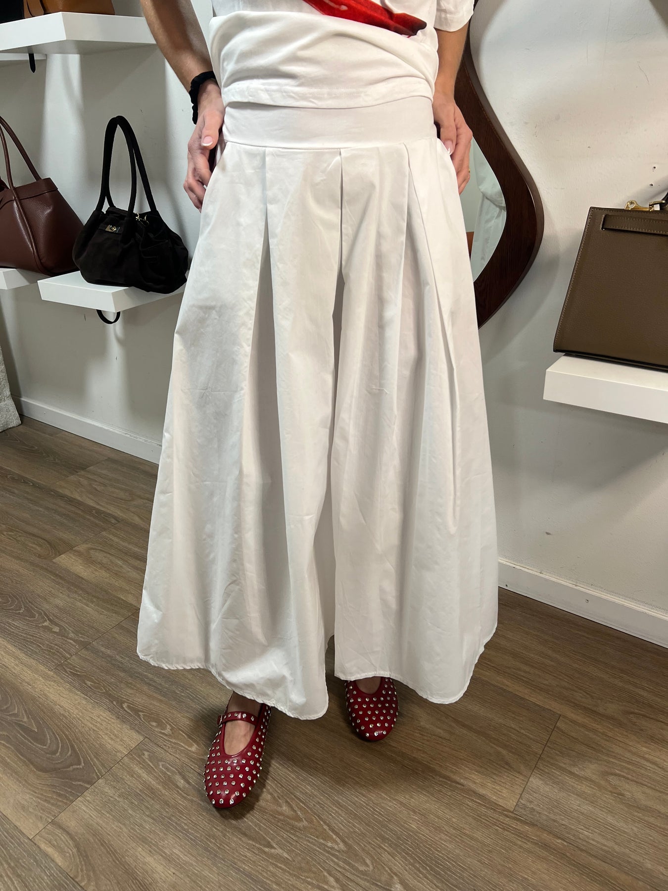 Kjol i 100% bomull med resår baktill. Normal i storlek. Kjolen är i en krispig tunn poplin