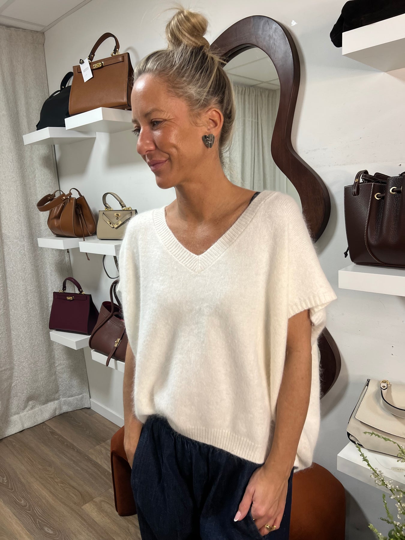 Otroligt mjuk och skön stickad väst i 62 %. Angora  32 % polyamid 8 % ull