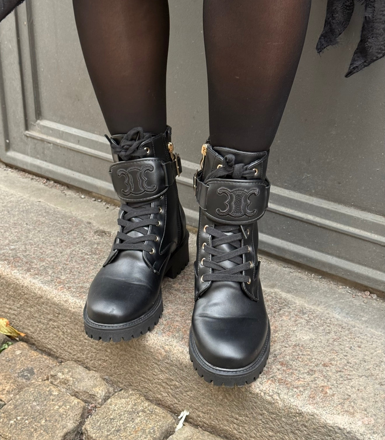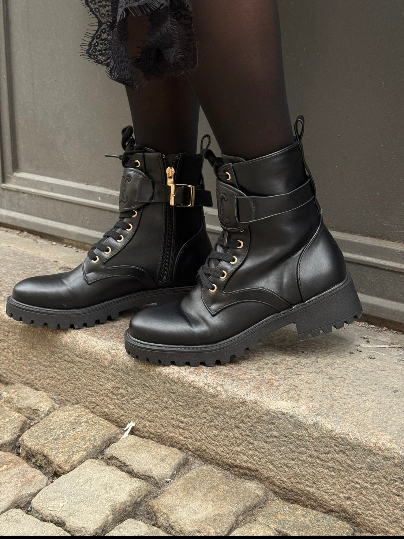 Boots med snörning och emblem framtill, går att ta av. I PU.