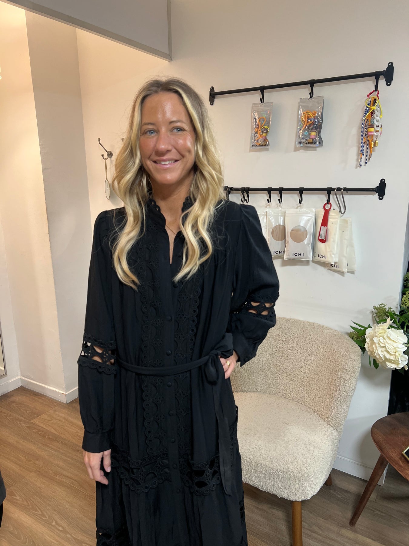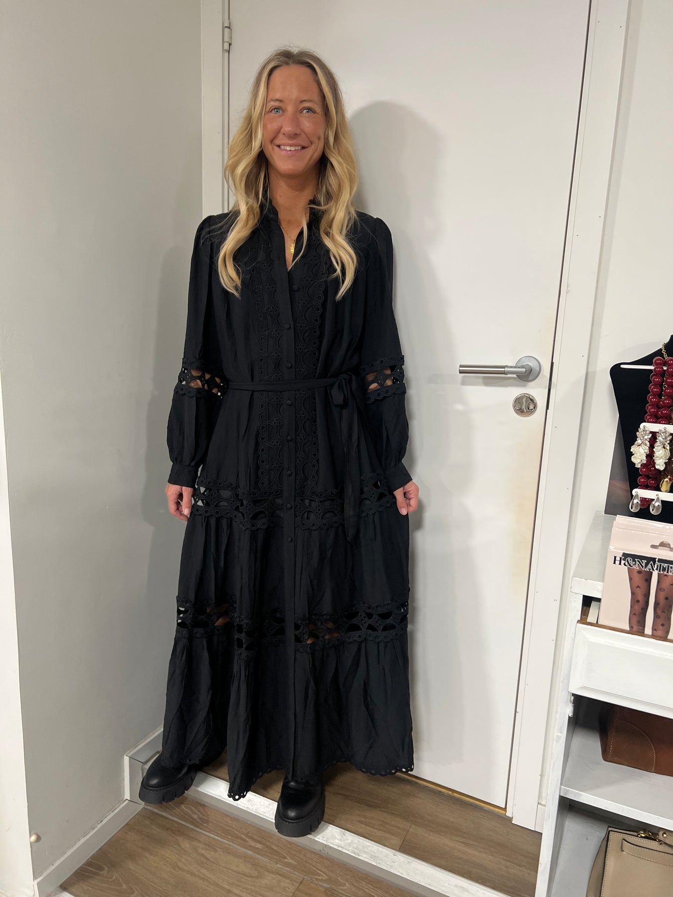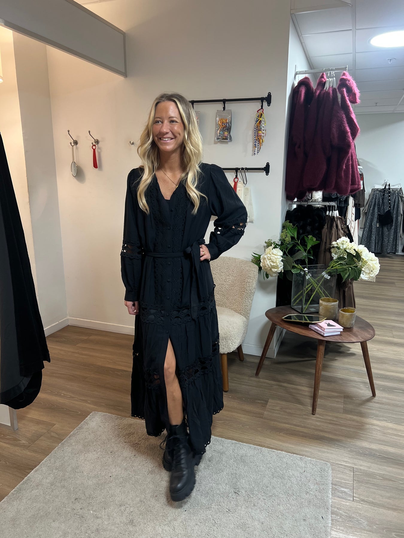 Fantastisk långklänning med spets och knappar i halsen. Modell är 166 cm  och bär s/m