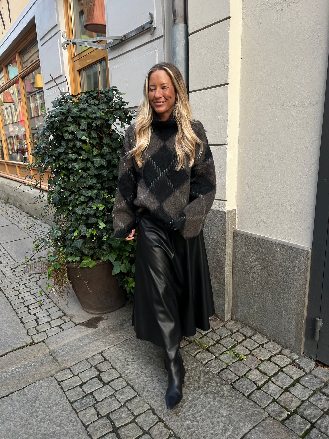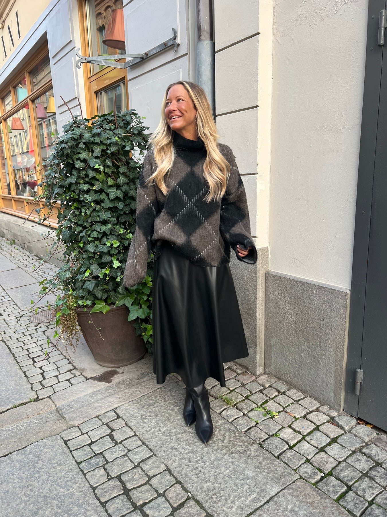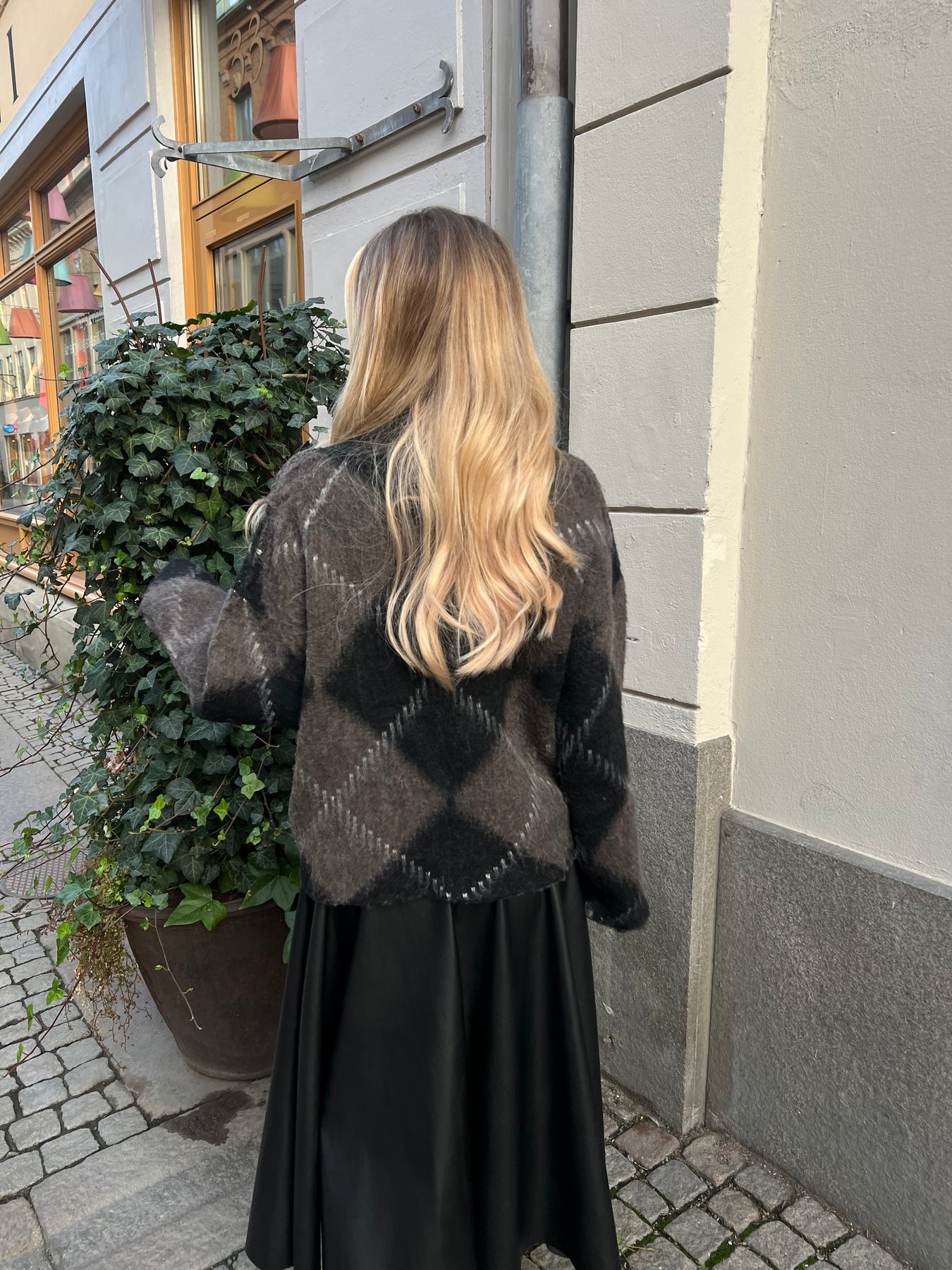 stickad tröja i rutigt mönster en storlek som passar 34 till 42