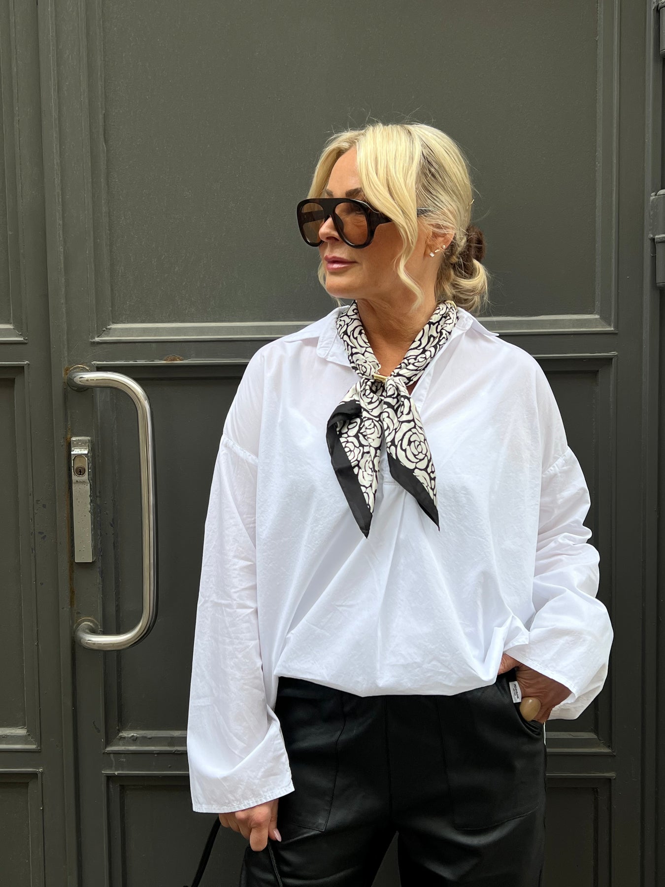 Mönstrad scarf med ringar, går att bära på olika sätt, ger det lilla extra till outfiten!