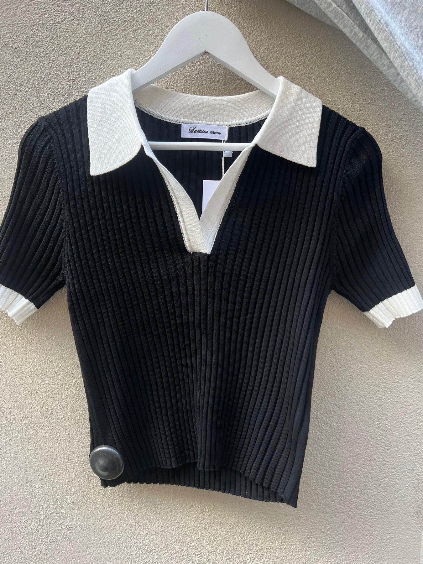 Stickad tröja i lite kortare modell en storlek som passar 34 till 38 Materialet är 70 % viskos 30 % polyester
