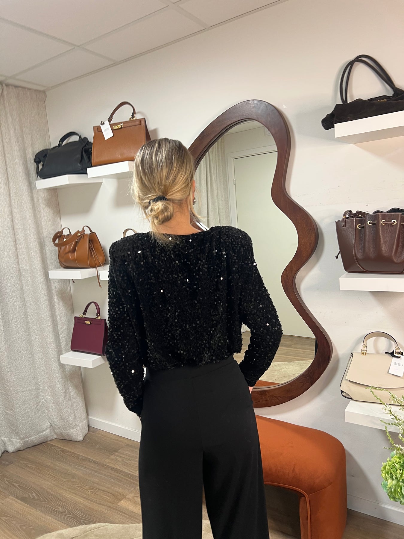Body i V med liten hyska fram till materialet är i Mesh 100 % polyester Med massa paljetter